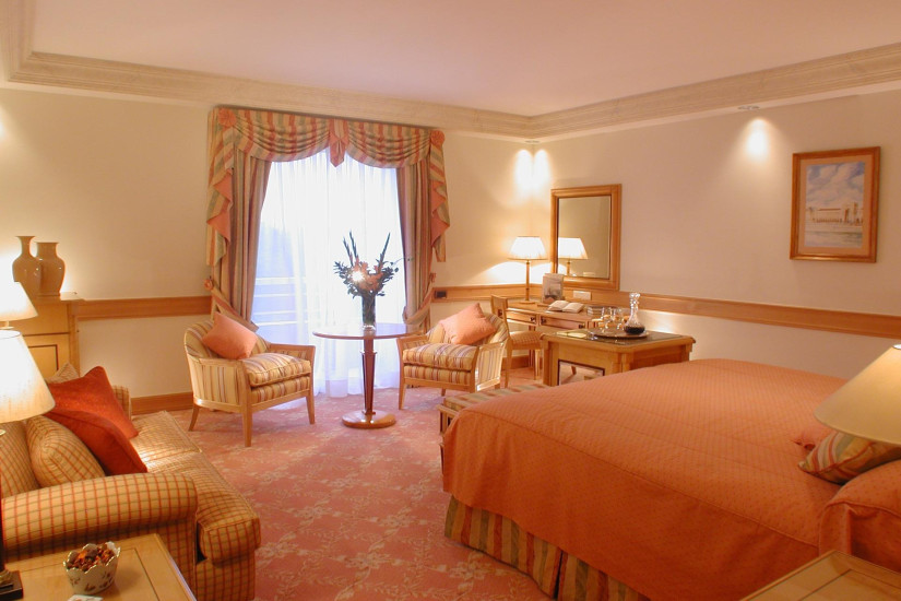 - 40 м2. Состоит из спальни с кроватью king или queen-size, либо с двумя кроватями twin и зоной отдыха, ванной комнаты (возможны номера с отдельными ванной и душем), балкона с видом на сад и/или бассейн. Возможно соединение с Garden Suite. Номера располагаются в крыле Garden и Palace с 1 по 3 этаж.