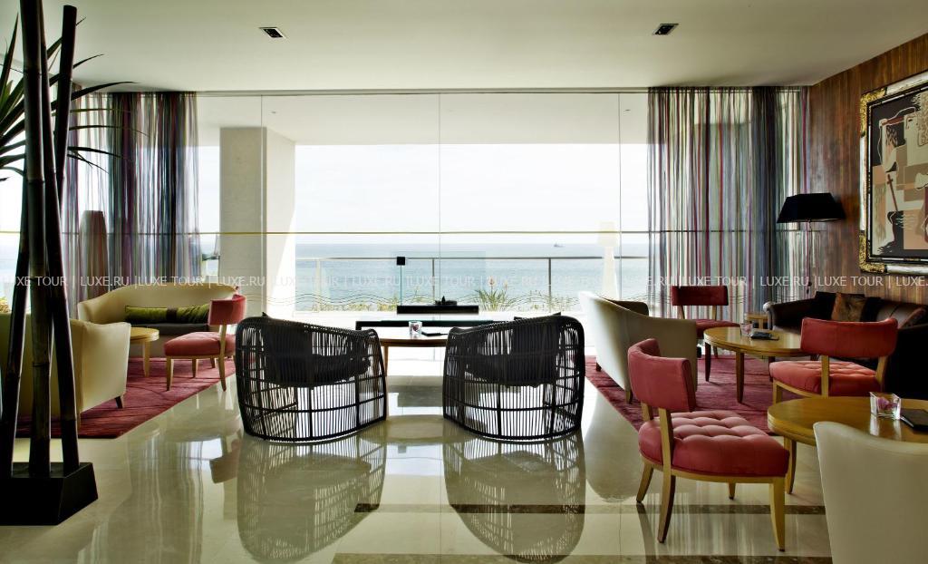 Белоснежное современное здание Cascais Miragem возвышается на самом берегу Атлантического океана, у широкой полосы пляжа, в окружении пышной средиземноморской зелени и недалеко от оживленной жизни курортов Estoril и Cascais. В номерах, оборудованных по последнему слову техники, - стильные интерьеры, выдержанные в теплых солнечных тонах, с большими панорамными окнами, элегантной мебелью светлого дерева, изысканными светильниками и оригинальной живописью на стенах, часть номеров имеет террасы.