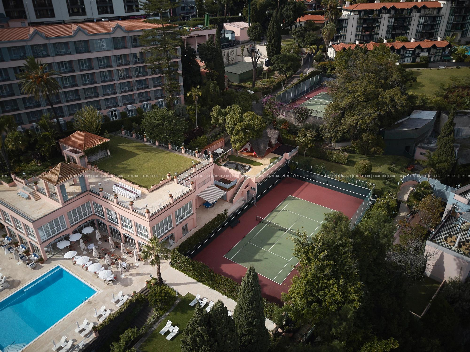 На территории отеля находятся: 3 открытых бассейна (два с морской водой, один из которых с подогревом, один подогреваемый с пресной водой, причем один из бассейнов находится на платформе уровне океана); 2 теннисных корта, бильярд, игровая комната, предлагается занятия аква-аэробикой, виндсерфинг, различные водные виды спорта, дайвинг, глубоководная рыбалка, альпинизм, верховая езда, уроки португальского языка, танцев, дегустации вин, увлекательные экскурсии, морские прогулки и прогулки на вертолете, наблюдение за дельфинами, развлекательные программы и многое другое. Также предлагается выезд на 2 гольф-поля, расположенных в 20 и 40 минутах езды от Фуншала.