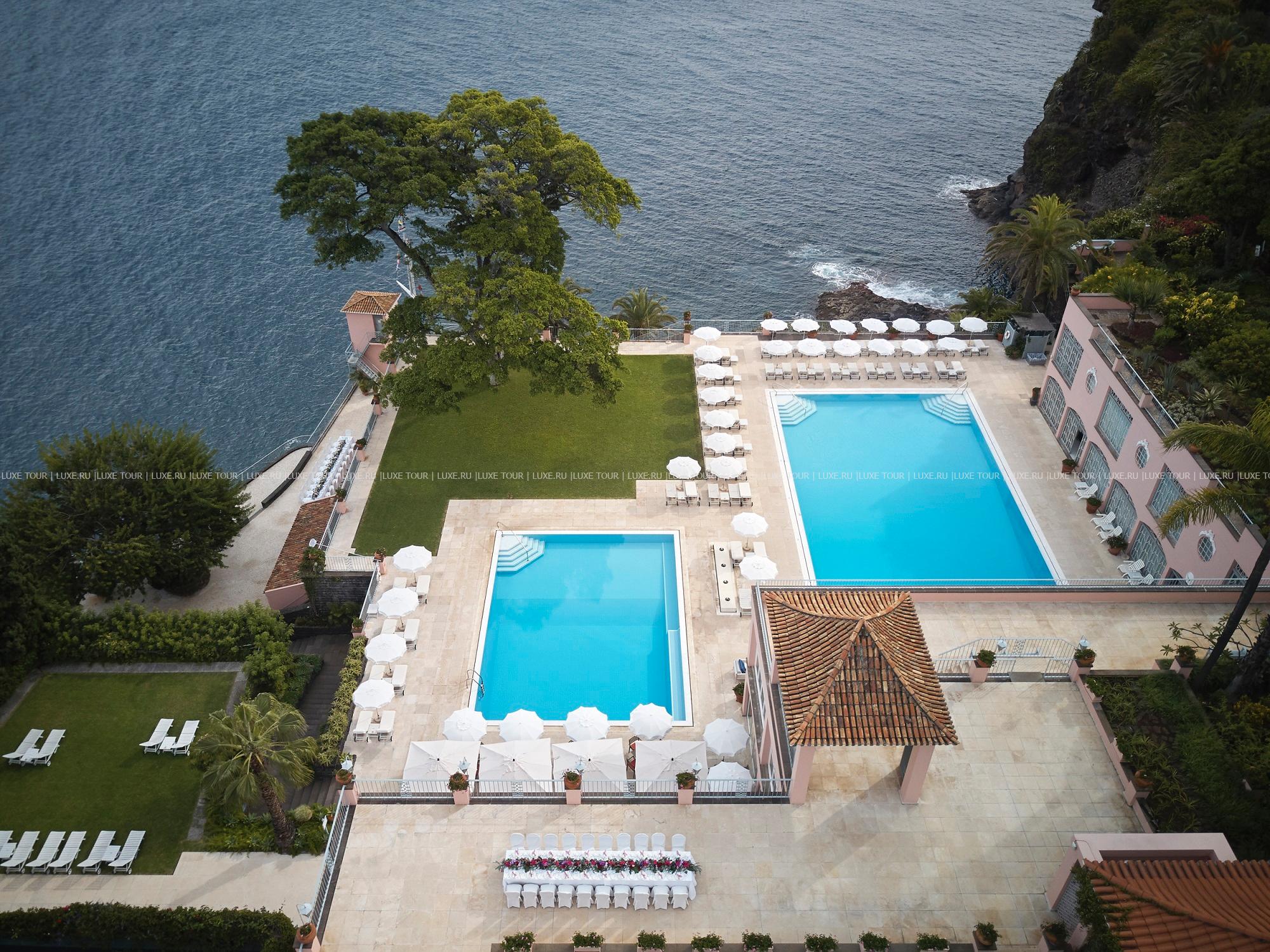 На вершине утеса, возвышающегося над бескрайней синевой залива Фуншал, расположено великолепное здание Belmond Reid's Palace, Мадейра, окруженное благоухающими субтропическими садами с пышной геранью, гибискусом, ароматным шалфеем и виноградными лозами. Фешенебельный отель, распахнувший свои двери в 1891 году, сразу стал излюбленным местом отдыха представителей высшего света и мировых знаменитостей. Отель восхищает изысканной роскошью интерьеров, безупречным сервисом и особой атмосферой, сочетающей респектабельность и уют. Сегодня всё это лишь дополнилось современным комфортом. Гостей ждут шикарные номера и первоклассный Спа центр, лазурные бассейны и террасы, утопающие в зелени экзотического сада, широкий выбор развлечений для взрослых и детей, прекрасные возможности для активного отдыха и спорта. Рестораны и бары отеля рассчитаны на самых искушенных гурманов и ценителей тонких вин. Здесь всё соответствует высшему разряду. Но очарование Belmond Reid's Palace, Мадейра всё же неразрывно связано с историей отеля и его именитыми гостями, а потому здесь так легко можно представить, как сэр Уинстон Черчилль пьет чай на живописной террасе, австрийская императрица любуется звездами на увитой зеленью веранде, а на лужайке сада учитель танцев показывает сложные «па» танго Бернарду Шоу…