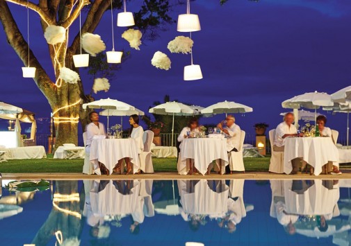На террасе у бассейна предлагается разнообразие горячих и холодных закусок, освежающие напитки и коктейли.