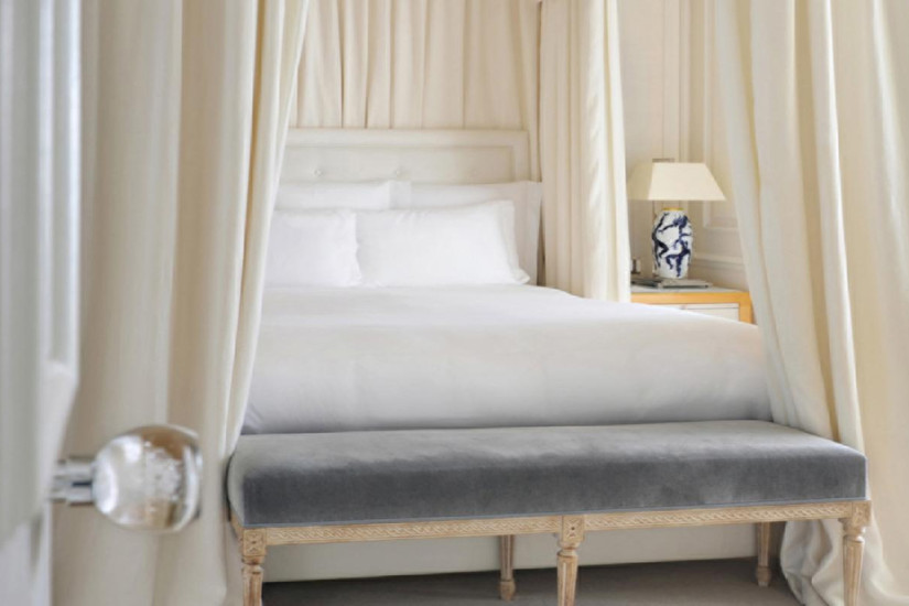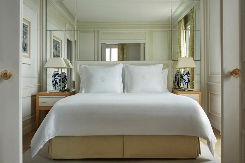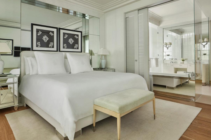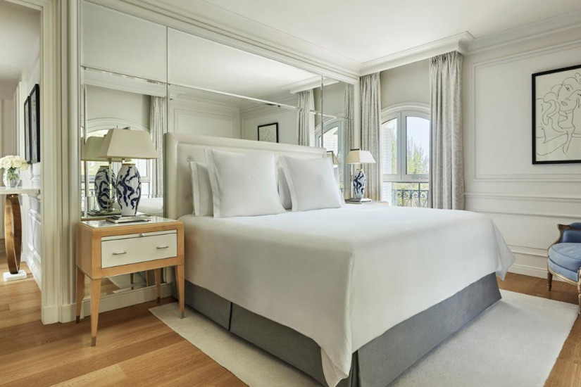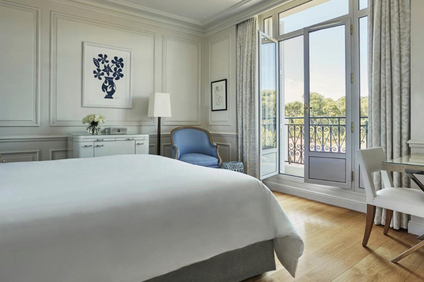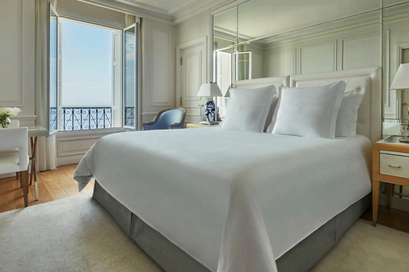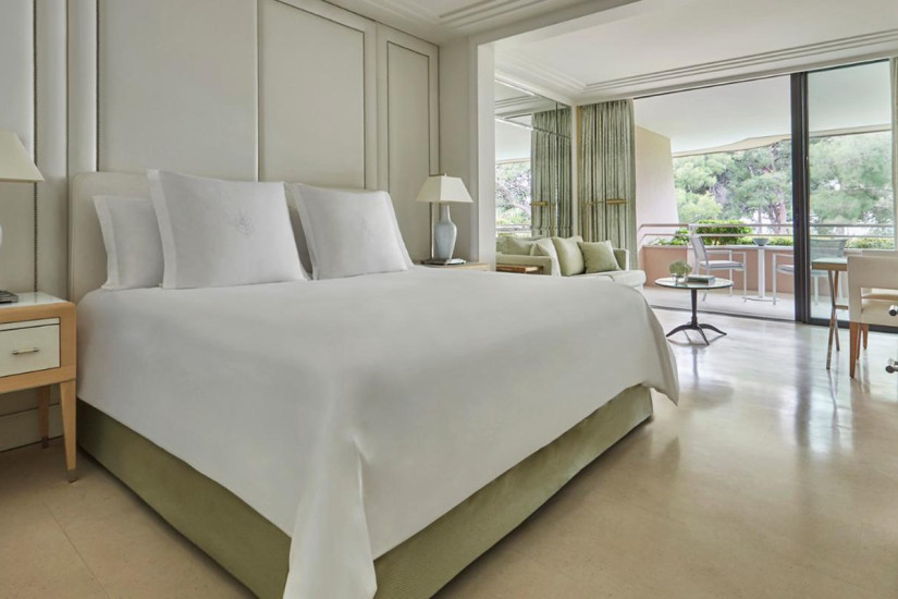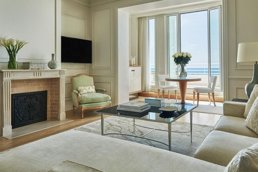 - 49 м2. Состоит из спальни с кроватью king-size, гостиной зоны, мраморной ванной комнаты с ванной и отдельным душем, просторной гардеробной, террасы с захватывающим и очаровывающим видом на Средиземное море от Канн до Монако. Находится на последнем этаже исторического здания. Оформлен итальянским дизайнером Альберто Пинто и обставлен изысканной мебелью. Использование пастельных и бежевых тонов увеличивает освещенность этого номера с панорамным видом.