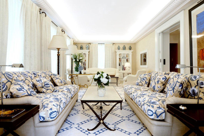 - 47-59 м2. Состоит из спальни с кроватью king-size, гостиной зоны, мраморной ванной комнаты с ванной и отдельным душем, просторной гардеробной. Оформлен Пьер-Ивом Рошоном и обставлен изысканной современной мебелью. Использование полотен из белого льна и натурального шелка с пастельными бежевыми оттенками и белого цвета увеличивает освещенность и особенно подчеркивает изумительные виды на сосновый бор и сады.