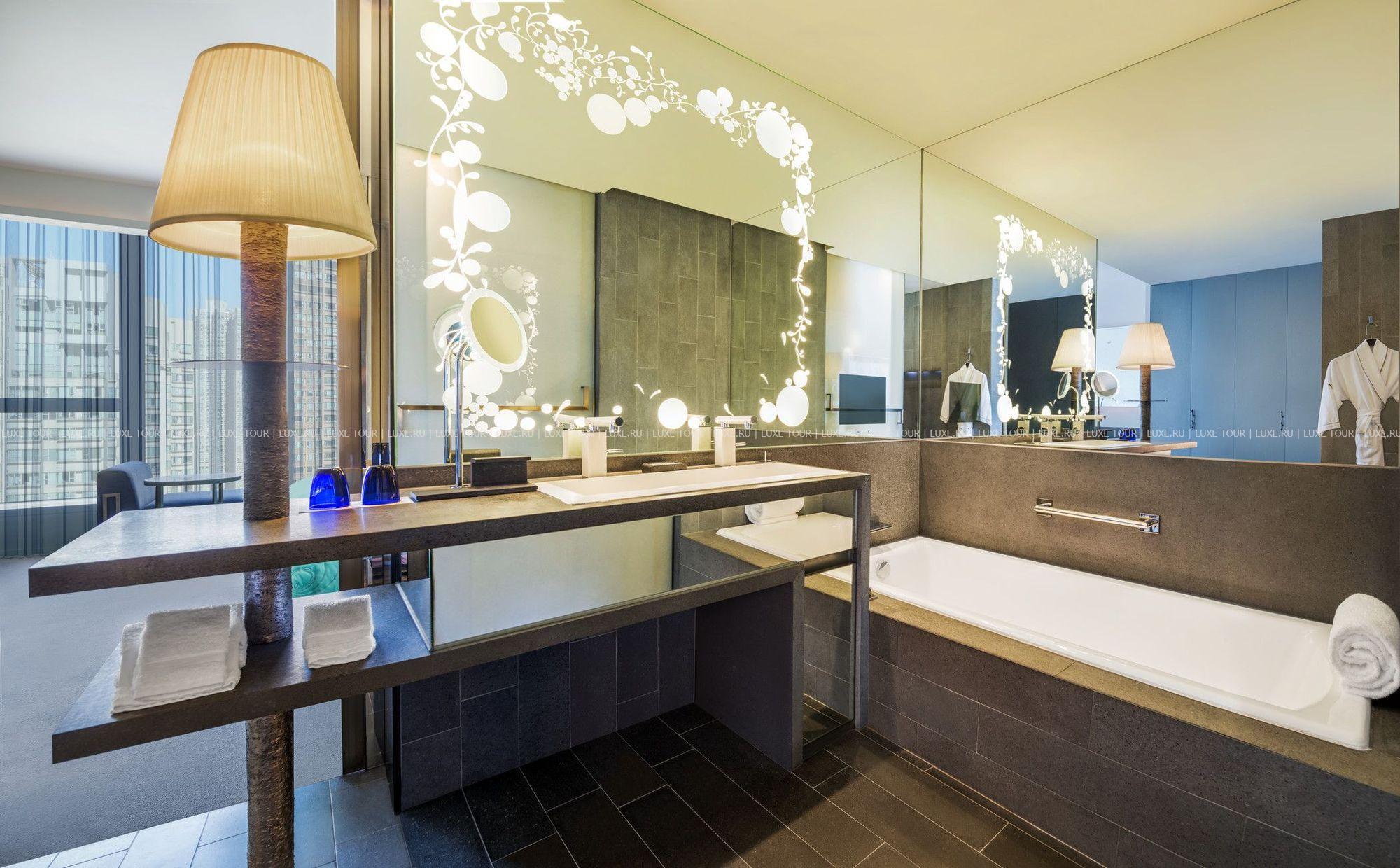 Сверкающая зеркалами окон 76-этажаная башня W Hong Kong возвышается в оживленном районе Гонконга — Западном Каулуне, который часто называют «восточным Манхэттеном». Этот уникальный отель сочетает самые современные дизайнерские тенденции и безупречный сервис. W Hong Kong предлагает разнообразие оборудованных по последнему слову техники номеров, интерьеры которых восхищают элегантностью стиля, оригинальными цветовыми решениями и изяществом декора, а из панорамных, во всю стену окон можно любоваться потрясающими видами Гонконга и лазурной гладью залива. В отеле есть всё для отдыха и бизнеса: от отличного СПА-центра и просторного бассейна на крыше - до ресторанов с изысканной кухней, уютных баров и прекрасно оснащенного бизнес-центра. W Hong Kong представляет эксклюзивный дизайнерский стиль и комфорт 21 века.