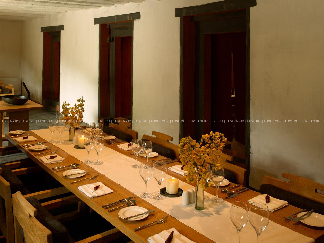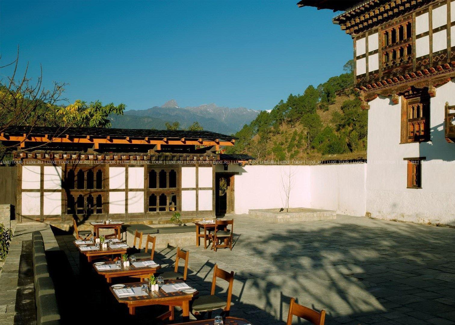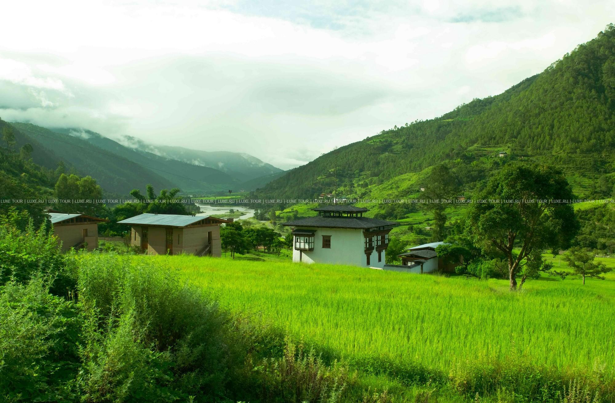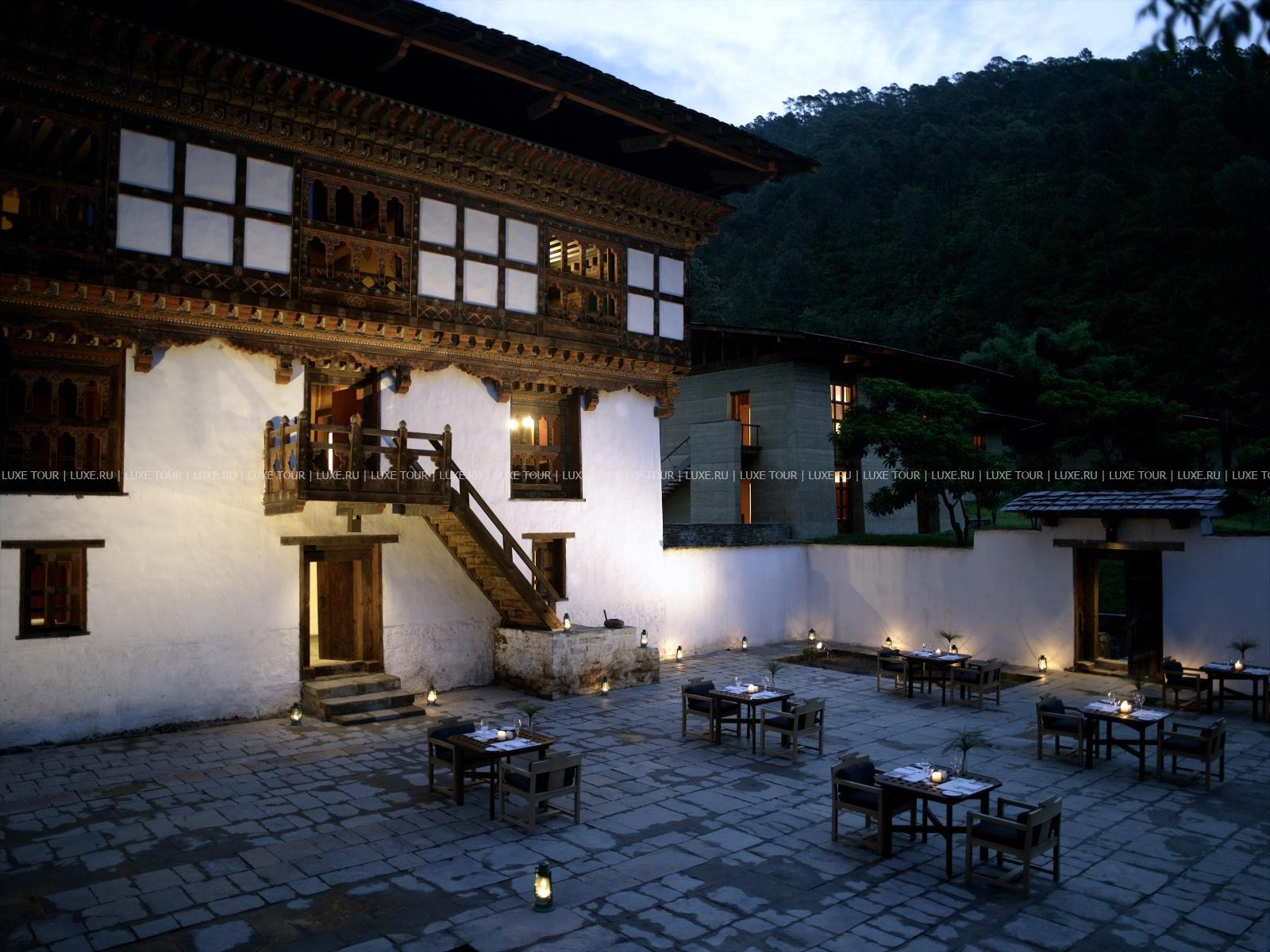 Отель расположен в древней столице Бутана, Пунакхи, лежащей в восточной части страны на высоте 1300 м над уровнем моря.