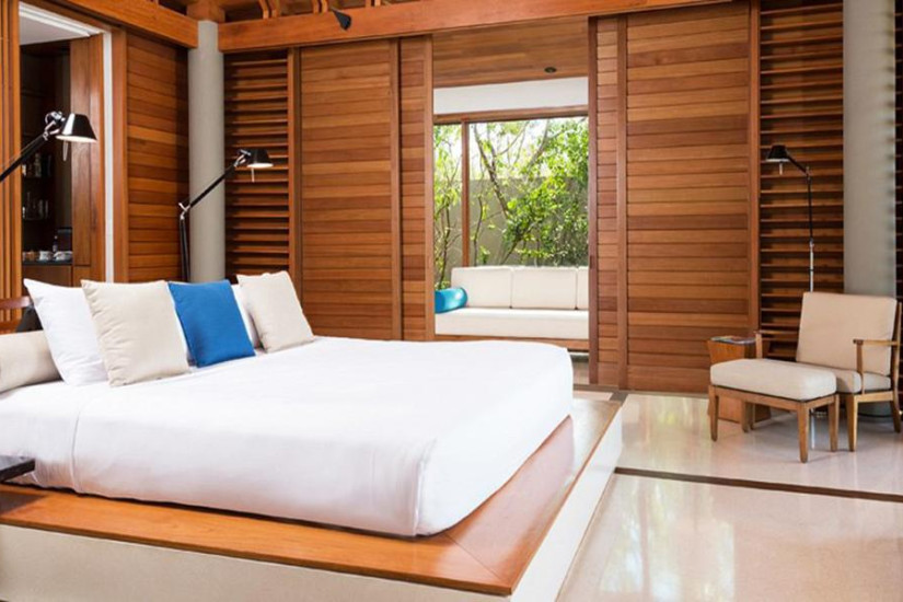 - 1342 м2. Самая просторная вилла отеля включает шесть павильонов-спален, каждый из которых имеет свою гардеробную и ванную комнату с ванной и отдельным тропическим душем, также вилла включает павильон с гостиной и столовой, павильон-кухню, кабинет, душ на открытом воздухе при главной спальне, террасу с бассейном и обеденной зоной. Имеет прямой выход к пляжу и пляжный павильон с отдельной зоной отдыха, обеденной зоной и видом на океан.