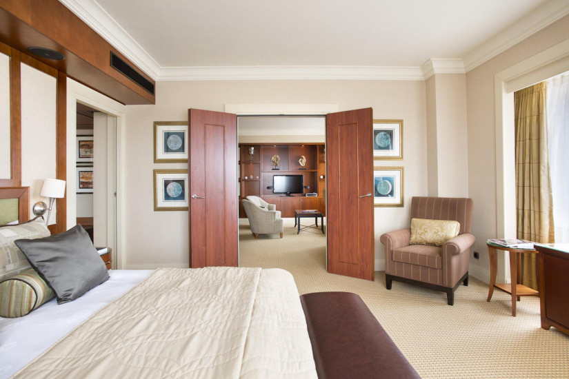 - 150 м2. Роскошный номер состоит из спальни, отдельной гостиной с рабочей зоной, бара, оборудованной кухни, столовой, ванной комнаты с ванной и отдельным душем. Имеет панорамный вид на город. Гостям номера предоставляется доступ в Executive Lounge, расположенный на 23 этаже. Возможно объединение номеров.