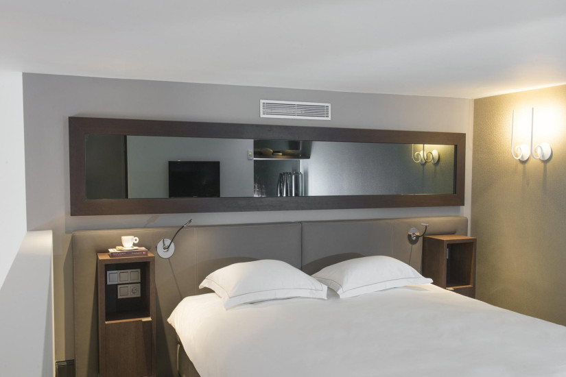 кондиционер, телевизор, прямой телефон с голосовой почтой, письменный стол, факс, модем, видеомагнитофон, CD плеер, мини-бар, сейф, фен.