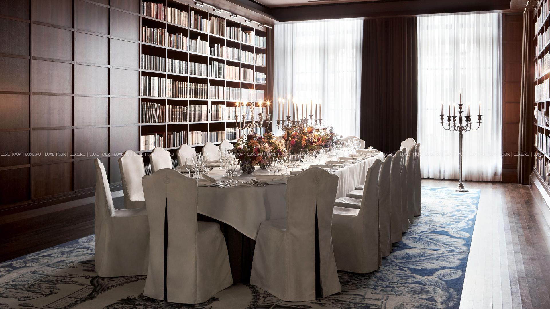Для гостей – 6 залов для деловых и торжественных мероприятий. Вмещающие от 24 до 100 человек, бизнес-центр, библиотека, сигарный салон, частная пристань, автомобильная парковка, лимузин-сервис, услуги консьержа, услуги прачечной и химчистки.