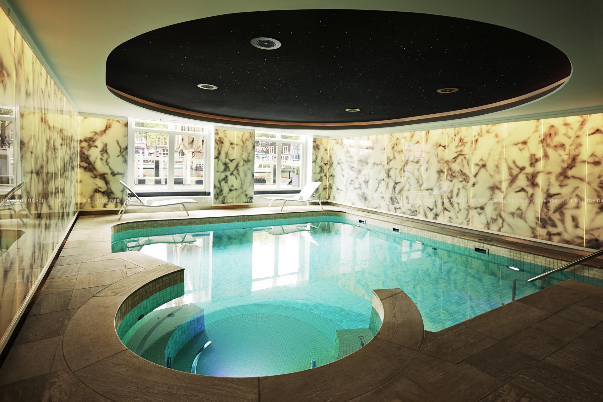 Отель располагает отличным Спа центром, в котором имеется крытый подогреваемый бассейн с гидромассажной зоной и видом на реку Амстел, инфракрасная и финская сауны, хаммам, зона отдыха с патио на берегу реки, спа-бутик, тренажерный зал, салон красоты, студия маникюра, а также 4 прекрасно оборудованных процедурных кабинета, в которых предложен широкий спектр услуг по уходу за телом и лицом.