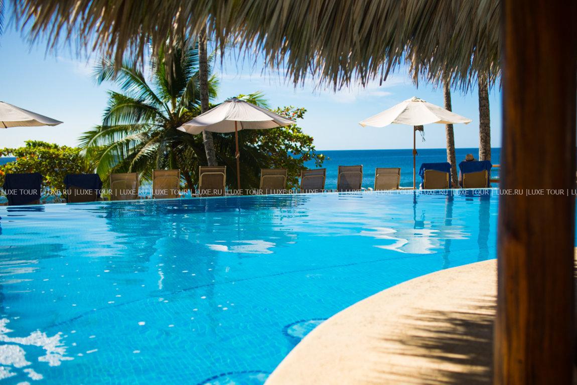 Невысокие бунгало и яркие виллы отеля Tango Mar, Никойя, укромно раскинулись среди 150-акрового тропического сада, между частным Биологическим заповедником Curu Biological Reserve и Природным заповедником Cabo Blanco Nature Reserve, неподалеку от чистого пляжа полуострова Никойя, на тихоокеанском побережье Коста-Рики. Этот небольшой отель класса люкс предлагает путешественникам отвлечься от ритма городской цивилизации и окунуться в абсолютное уединение с нетронутой природой: в окружающих лесах и на территории отеля можно встретить оленей, ленивцев и тропических птиц. Гости Tango Mar, Никойя, могут выбрать размещение по своему вкусу — в бунгало, построенных в полинезийском стиле, на сваях; в отдельно стоящих виллах или в стандартных номерах в окружении буйной экзотической растительности. Ресторан и бары отеля сервируют блюда костариканской и международной кухонь, дополненные тропическими коктейлями и прохладительными напитками. Также для гостей — центр йоги, гольф-поле, теннисный корт, бассейн.