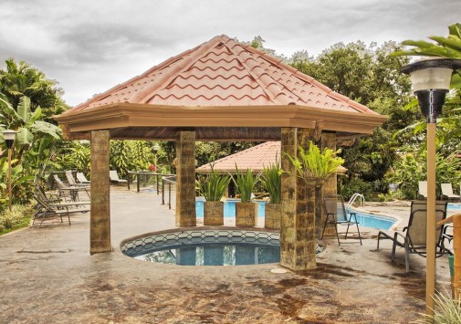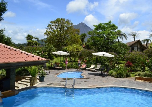 Уютные бунгало отеля Montaña de Fuego Hotel & Spa раскинулись на зеленых лужайках тропического сада, у озерной глади, неподалеку от знаменитого действующего вулкана Ареналь — визитной карточки Коста-Рики, рядом с городом Ла-Фортуна де Сан Карлос, в одном из самых живописных регионов страны — в Национальном парке Arenal National Park. Montaña de Fuego Hotel & Spa занимает территорию 45 гектаров и отличается очень дружелюбной атмосферой, предоставляя своим гостям уединенное размещение и разнообразный экологический досуг. Здесь можно в полной безопасности наблюдать за потоками лавы вулкана, посетить ближайшие минеральные источники или отправиться в джунгли Национального парка для знакомства с представителями богатой флоры и фауны. Комплекс Montaña de Fuego Hotel & Spa — это традиционные домики, созданные по современной технологии из необработанного дерева. Внутренний дизайн отличается простотой и практичностью. В ресторане отеля предлагается меню костариканской и международной кухонь, дополненное коктейлями и всевозможными напитками. Также для гостей — Spa-центр, сувенирный магазин, бассейны.