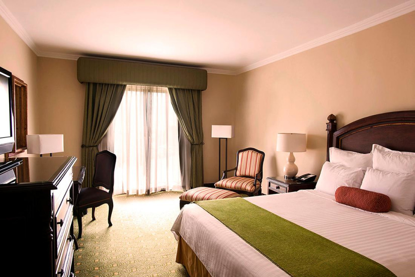 - 61 м2. Состоит из спальни с кроватью king-size, отдельной гостиной с рабочей зоной, ванной комнаты с ванной, гостевой уборной, двух французских балконов с видом на территорию отеля и горы. Гостям предоставляется доступ в Executive Lounge. Возможно объединение номеров.