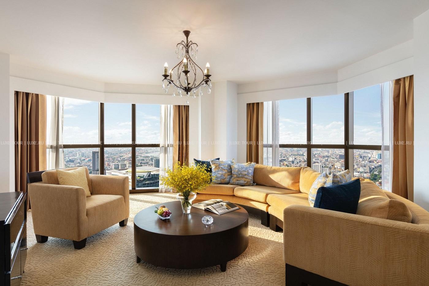 Величественная башня Lebua At State Tower, увенчанная сверкающим позолотом куполом, издалека выделяется своей необычной архитектурой на фоне многочисленных небоскребов тайского мегаполиса. Отель предлагает гостям прекрасные условия для отдыха и деловых поездок. Оборудованные по последнему слову техники элегантные номера различных категорий, с балконов которых открывается потрясающий вид на город и знаменитую реку Chao Phraya. Рестораны, восхищающие деликатесами высокой кухни, бары с широким выбором первоклассных напитков, большой открытый бассейн, современно оснащенные конференц-залы. Lebua At State Tower обеспечивает эксклюзивные условия для отдыха, бизнеса и знакомства с оживленной жизнью уникального города.
