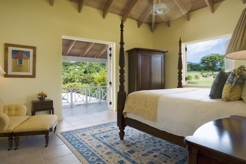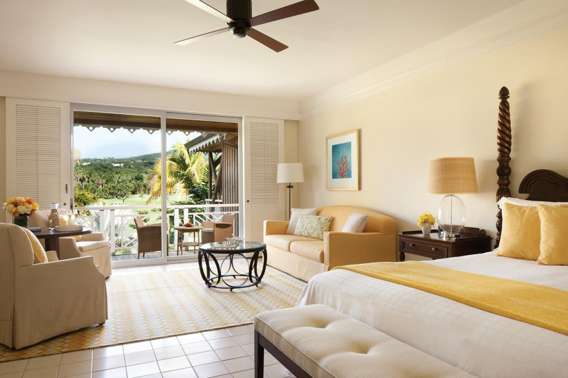 - 45-52 м2. Состоит из спальни с кроватью king-size или двумя двуспальными кроватями, гостиной зоны с кофейным столиком, ванной комнаты, балкона или патио с видом на вулкан Невис и поле для гольфа. Располагаются в коттеджах 11 и 12 на верхних или нижних этажах. Максимальное размещение – 3 взрослых или 2 взрослых + 2 ребенка.
