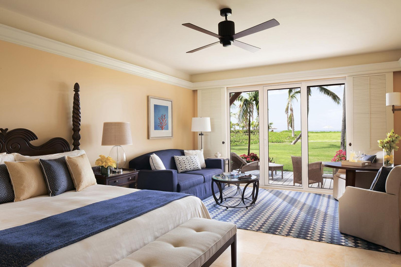 - 46-52 м2. Состоит из спальни с кроватью king-size или двумя двуспальными кроватями, гостиной зоны с кофейным столиком, ванной комнаты, балкона или патио с видом на пляж и Карибское море. Располагаются в коттеджах 1-9 и на верхних этажах коттеджа 10. Максимальное размещение – 3 взрослых или 2 взрослых + 2 ребенка.