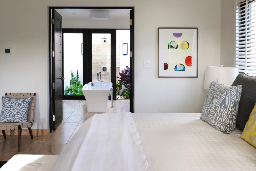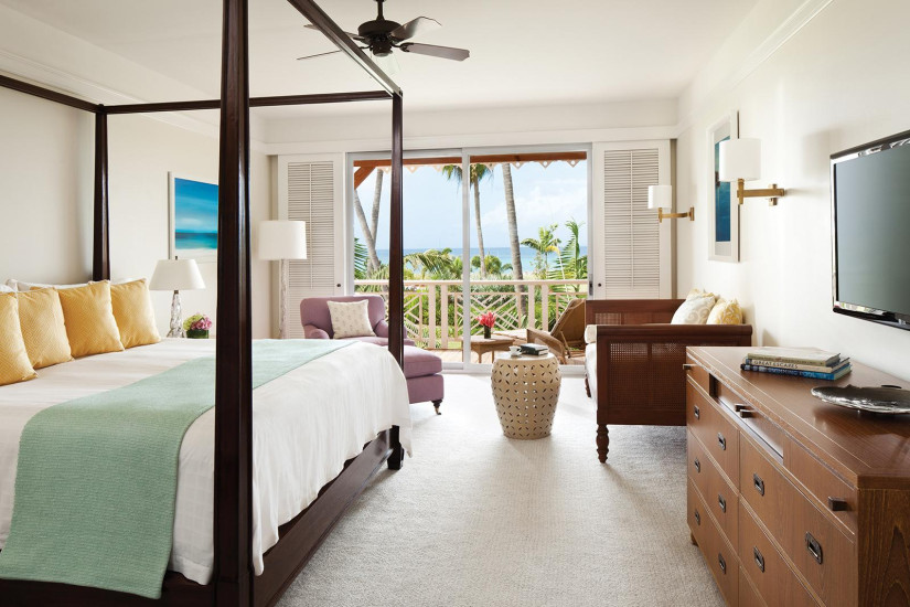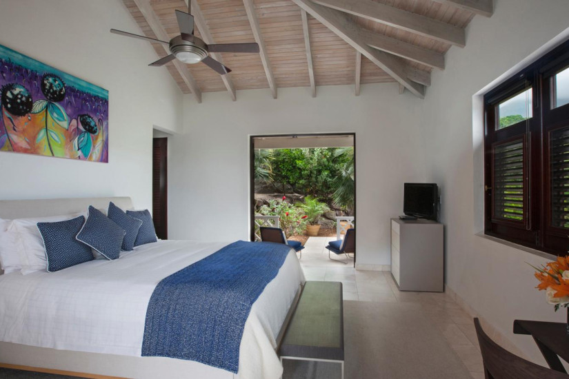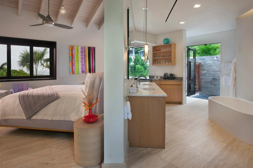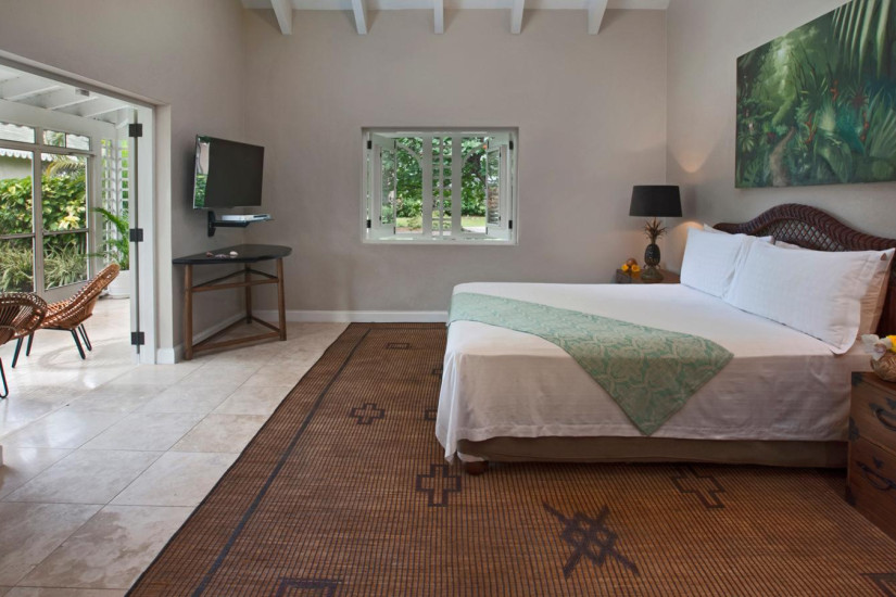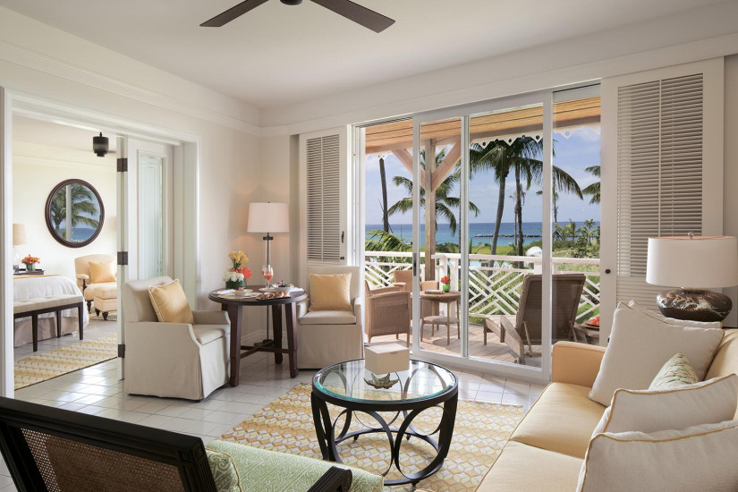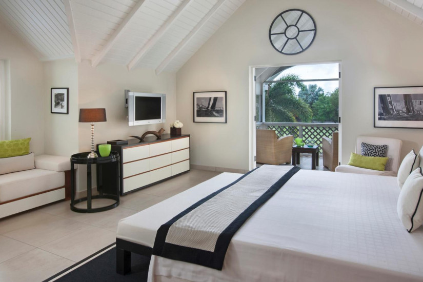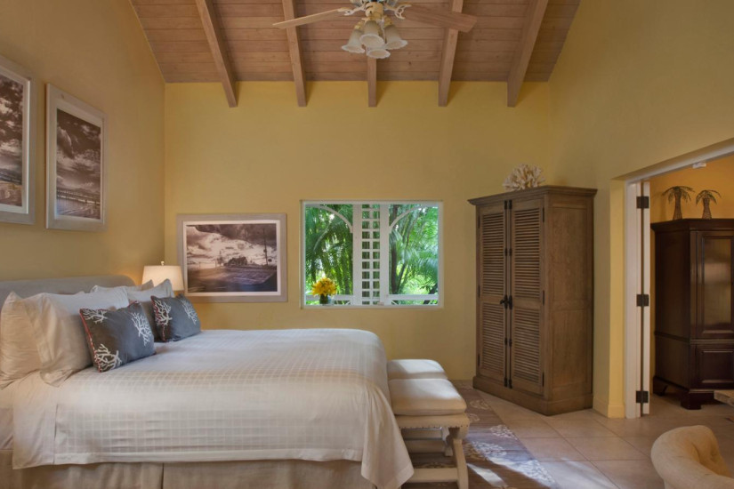 - 66 м2. Состоит из спальни с кроватью king-size и зоной отдыха, отдельной гостиной с обеденной зоной, ванной комнаты, балкона или патио с видом на пляж и Карибское море. Располагаются в коттеджах 1-3, 5, 8 и 9. Максимальное размещение – 3 взрослых или 2 взрослых + 2 ребенка. Возможно присоединение второй спальни.