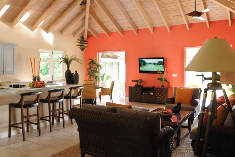 - 133 м2. Состоит из двух спален (одна - с кроватью king-size, другая - с двумя двуспальными кроватями), двух ванных комнат (одна - с ванной и отдельным душем, другая - с душем), просторной гостиной с обеденной зоной и оборудованной кухней, меблированной террасы с бассейном и видом на поле для гольфа и вулкан Невис. Располагается около главного здания. Максимальное размещение – 5 взрослых или 2 взрослых + 3 ребенка.