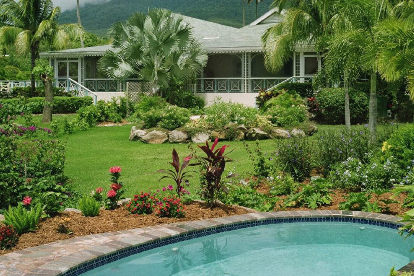 - 304 м2. Состоит из трех спален (две - с кроватью king-size, третья - с двумя кроватями queen-size), трех ванных комнат, просторной гостиной с обеденной зоной и оборудованной кухней, гостевой уборной, меблированной террасы с зоной отдыха, обеденной зоной, бассейном и видом на сад, поле для гольфа и вулкан Невис. Располагается вблизи пляжа, в трех минутах пешком от главного здания отеля. Максимальное размещение – 8 взрослых.