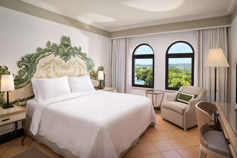 Отель располагает 215 номерами различных категорий, включая Guest Room и Suite. Интерьеры выполнены в изысканном португальском стиле: полы, выложенные яркой плиткой, мебель из темного дерева, кровати с роскошным расписным изголовьем. С балконов открывается захватывающий вид на лазурную гладь океана, горы Моншике и пышные сады.