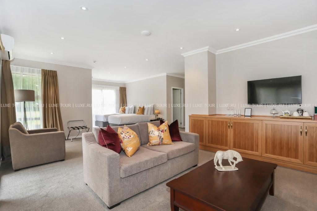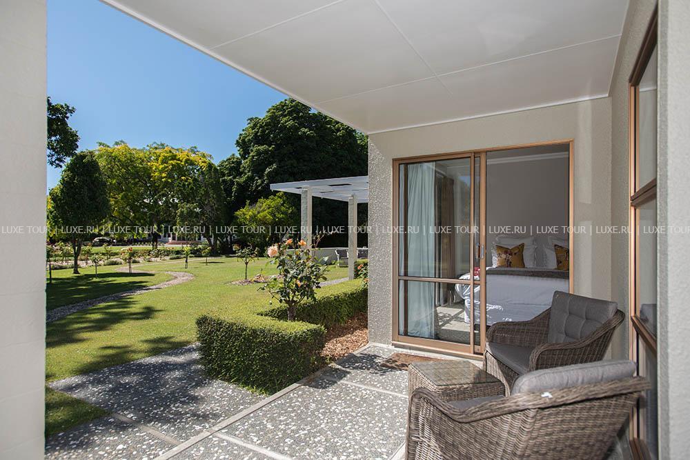 При входе в отель Вас встречают 2 статуи гордо сидящих львов, они охраняют покой Дома. По березовой аллее Вы проезжаете великолепные персиковые и яблоневые сады и сразу понимаете, что попали во «фруктовое сердце» Новой Зеландии.