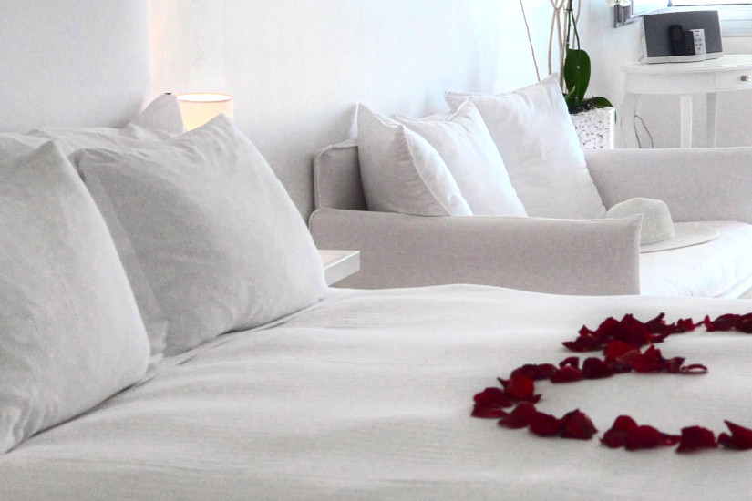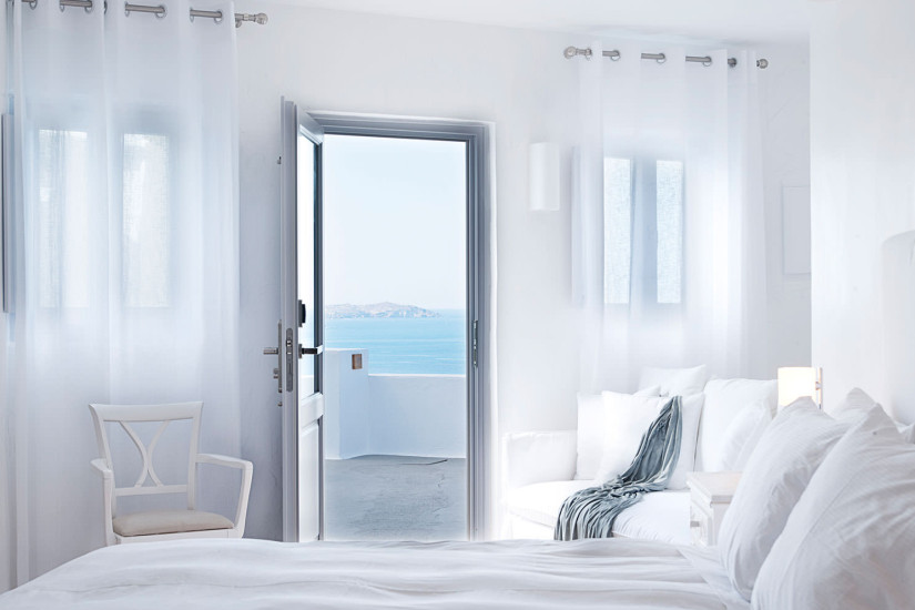 - 40 м2. Просторный номер с видом на море оформлен с элегантной простотой в традиционном эгейском стиле. Белый цвет в оформлении интерьера прекрасно сочетается с захватывающими морскими видами. Состоит из спальни, гостиной, ванной комнаты с джакузи, просторной террасы.