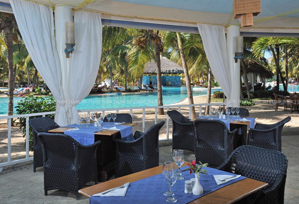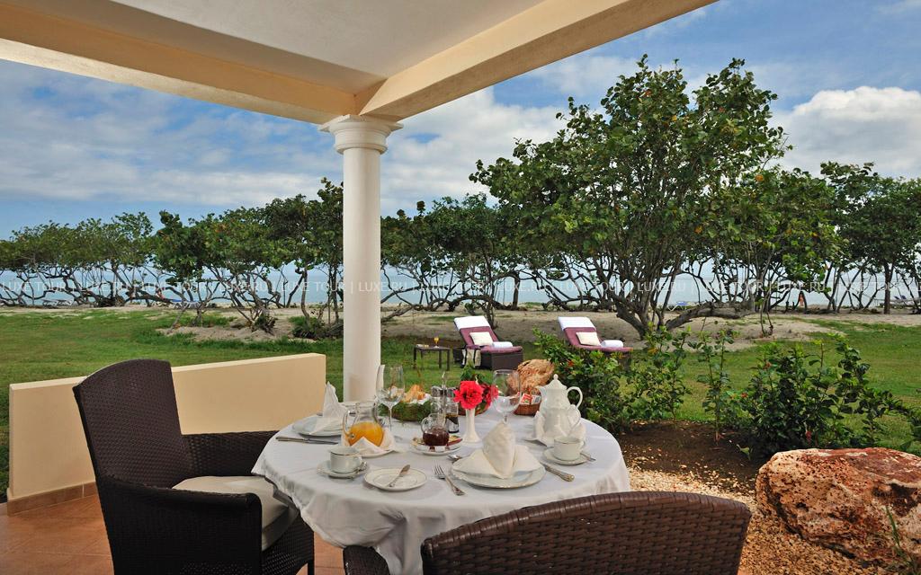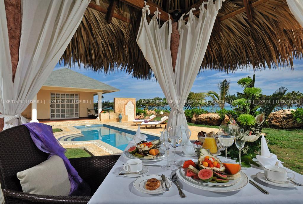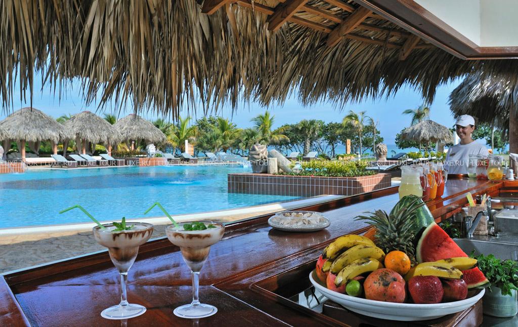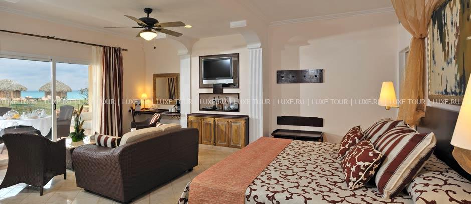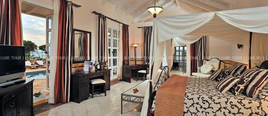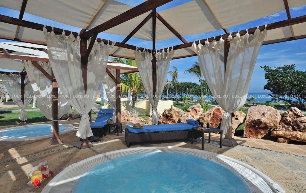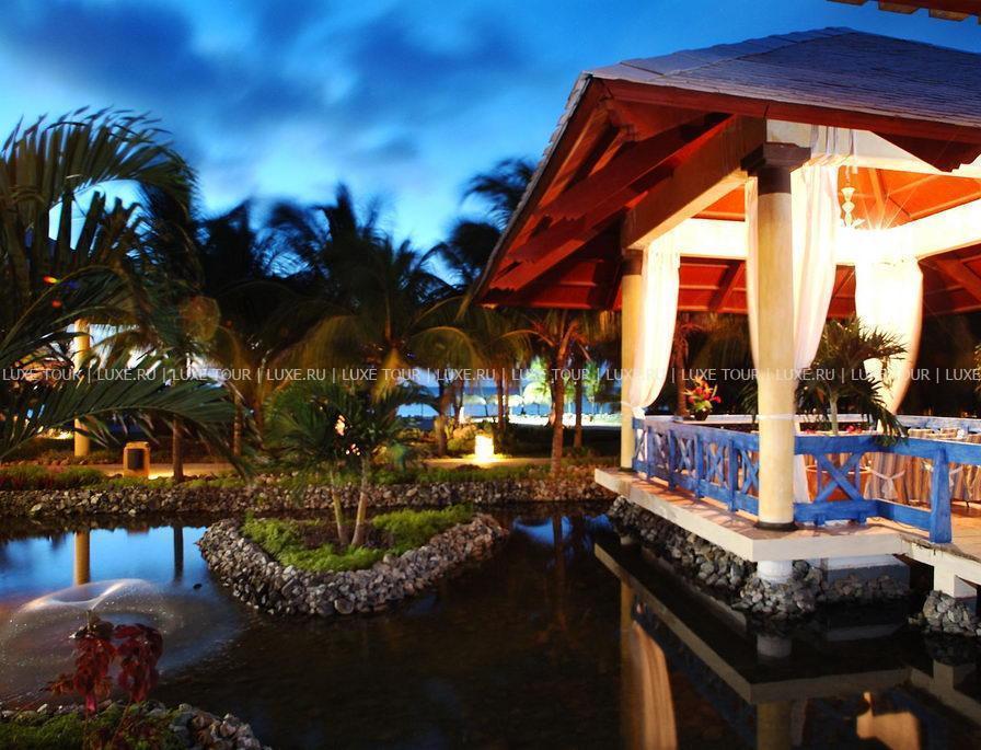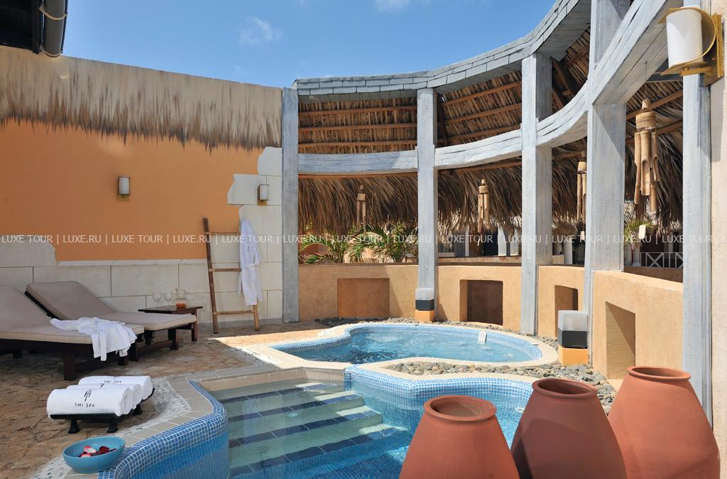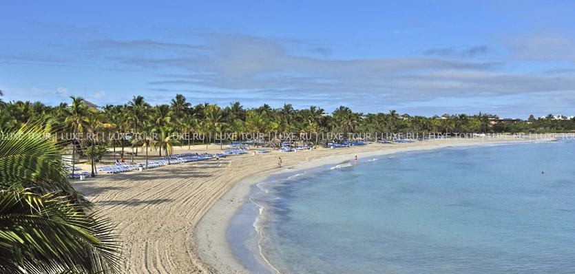2, у белоснежного, изогнутого в форме бухты 1,5-километрового пляжа и бирюзовой глади Карибского моря. Элегантные двухэтажные бунгало отеля идеально вписываются в окружающие ландшафты и окружены изумрудной зеленью тропических садов с тенистыми пальмами и живописными водоемами. Отель работает по системе Ultra All Inclusive и впечатляет разнообразием услуг самого высокого уровня. Изящно декорированные комфортабельные номера категорий Junior Suite и Suite и шикарные виллы с частными бассейнами. Многочисленные рестораны, представляющие кухню разных стран, и бары с уютной атмосферой. Несколько бассейнов, включая лазурный бассейн площадью 2400 м