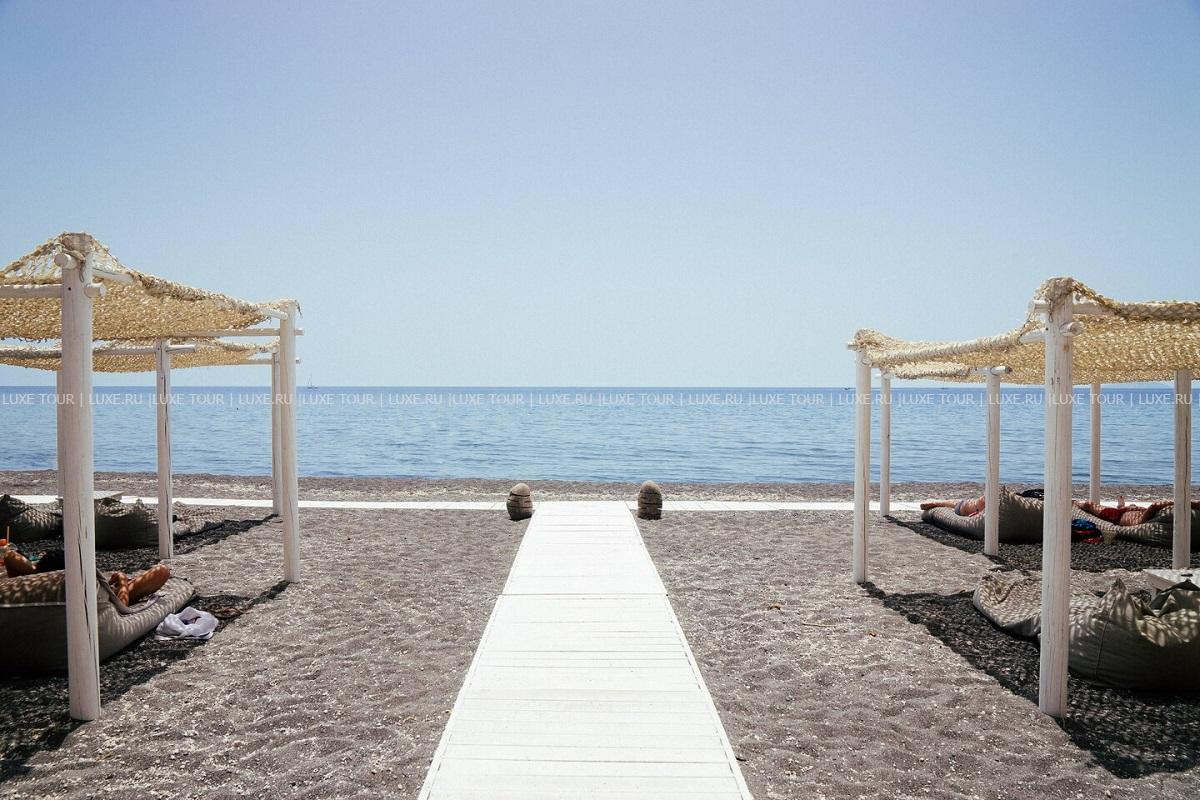 Отель располагает собственным оборудованным пляжем (в 4 км) с вулканическим песком, куда регулярно курсирует бесплатный шаттл. К услугам гостей — шезлонги, зонты, полотенца, открыт бар на пляже.