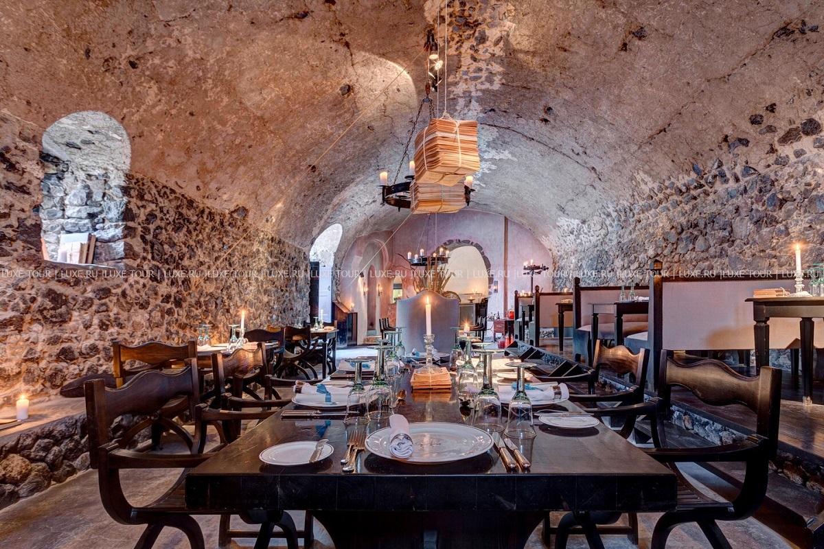 • В ресторане Privé Dining предлагается предварительное бронирование для гостей, чтобы попробовать дегустационные меню из пяти или семи блюд, которые подчеркивают бесчисленные ароматы Санторини.