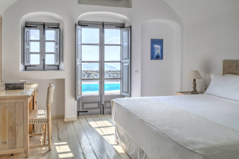 В отеле, 45 вилл и коттеджей, в том числе с частными бассейнами. В номерах индивидуальные интерьеры, отражающие различные древнегреческие эпохи (дорийскую, aфинскую, эгейскую), выполненные в белых тонах с яркими вкраплениями лазурной и зеленой гаммы, сочетающие современный изысканный минимализм с традиционными греческими мотивами и максимальным удобством.