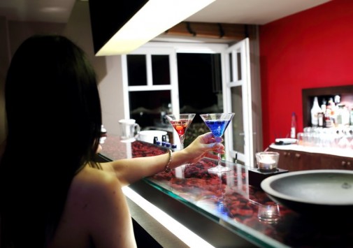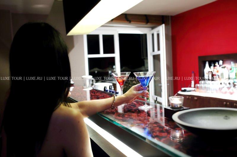Работает бар, в котором предлагается большой выбор вин и других алкогольных напитков.