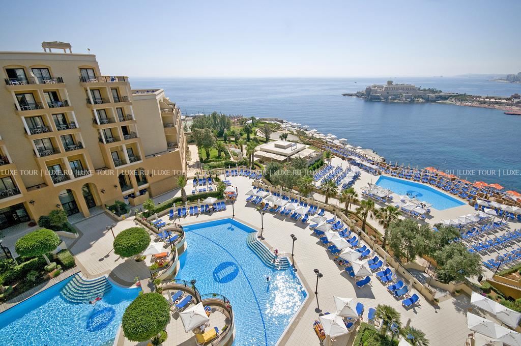 Удивительное расположение отеля у входа в залив Cент-Джордж города Cент-Джулианс создает впечатление окружения отеля бирюзовыми водами Средиземного моря. На территории каскадом расположен большой плавательный комплекс, состоящий из множества бассейнов, водопадов и в конце выходящий на пляж отеля, что создает чарующую атмосферу красоты, уюта и свежести. Изящный отель предлагает своим гостям роскошь, комфорт и отличный отдых.
