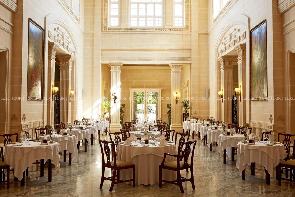 Ресторан Corinthia Room – ресторан является воплощением элегантности, качество предлагаемого обслуживания и блюд является одним из самых хороших на Мальте, что делает его любимым и более предпочитаемым, чем другие.
