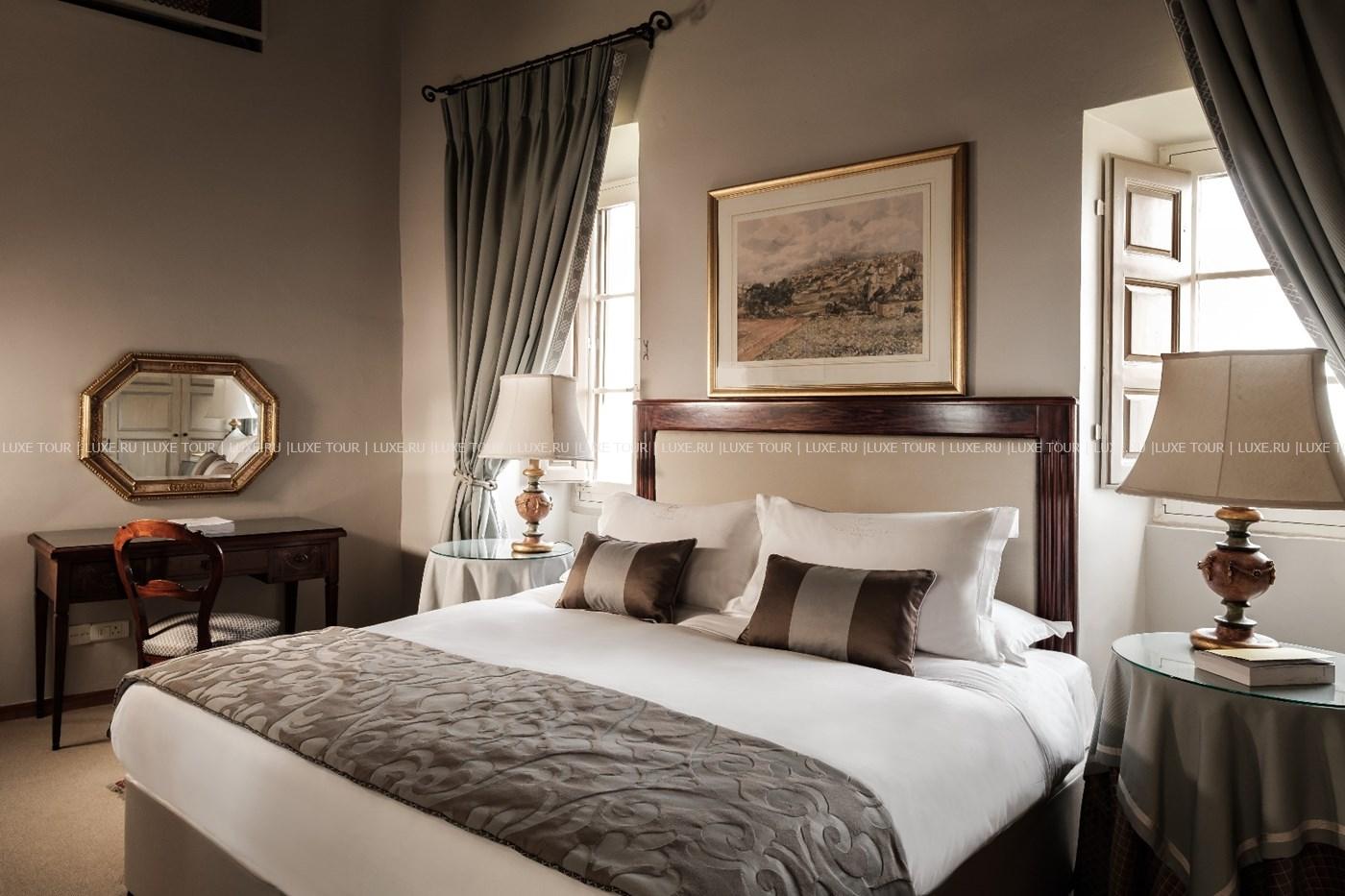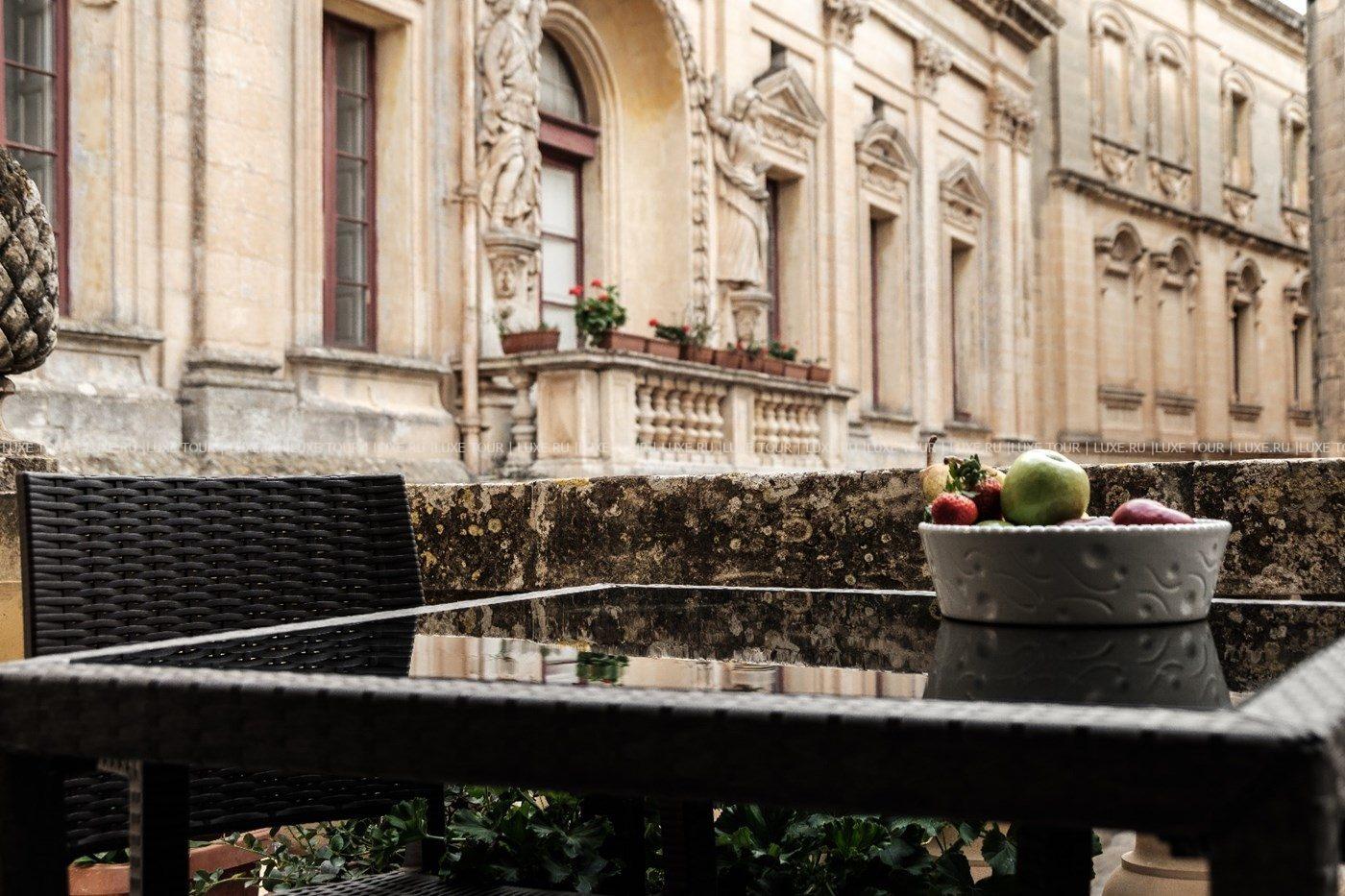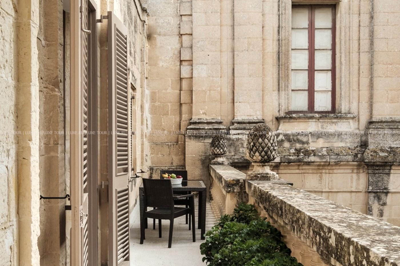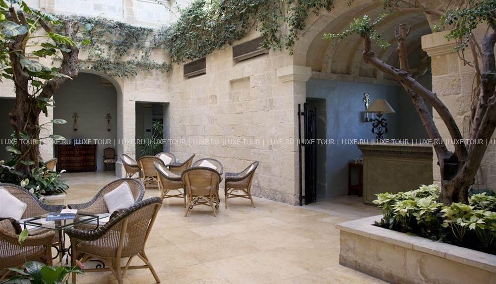 Отель расположен в легендарном дворце, построенном еще в конце XVII века, в прекрасном и тихом городе Мдина, в прошлом являющимся столицей Мальты. Здание отеля является частью средневекового архитектурного комплекса, который окружает Мдину. В настоящее время после полной реставрации отель является одним из самых уникальных и прекрасных из всех известных архитектурных комплексов, в то же время полностью модернизированный, отвечающий всем требованиям.