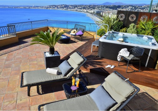 В исторической части Ниццы, в 20 минутах от международного аэропорта города, у основания крепостного холма, на улочке, продолжающей знаменитую Английскую Набережную, среди живописных скал примостился небольшой отель La Perouse. Яркое терракотовое здание, построенное по проекту дизайнера Франсуа Виллекроза из Сен Тропе, удачно разместилось на фоне пышного зеленого оазиса цитрусовых деревьев, заполненных цветами садов и служащего органичным фоном скалистого холма. Небольшие уютные балкончики, декоративные арки, лестницы, спускающиеся в душистый внутренний сад, и нависающие над морем террасы — все здесь свидетельствует о том, что в отеле царит атмосфера умиротворения и тишины, идеально подходящая для спокойного отдыха.