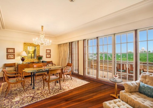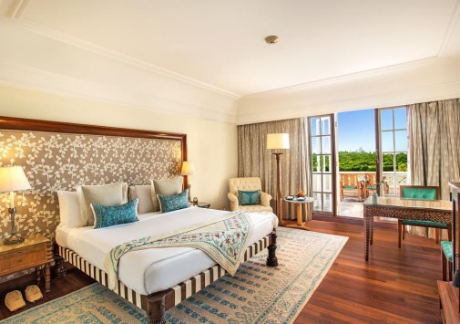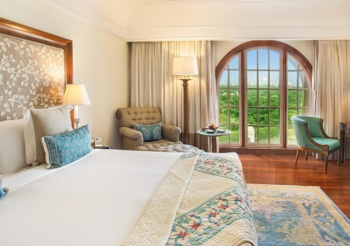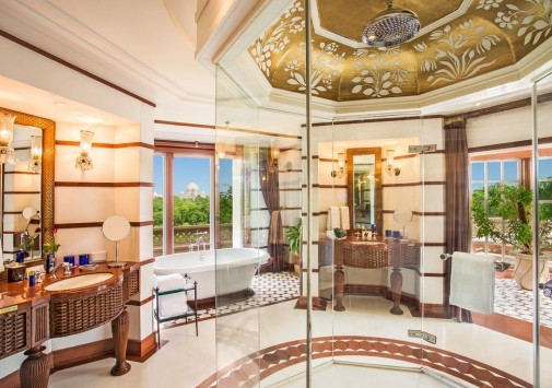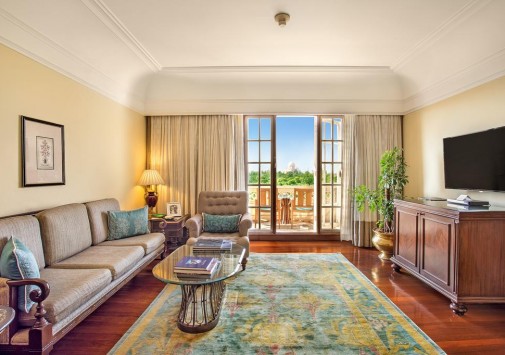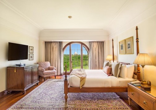 Все изысканно декорированные номера с роскошными ванными комнатами располагают захватывающими видами на Тадж Махал. В оформлении интерьеров широко использованы драгоценные породы дерева, текстиль и ковры ручной работы.