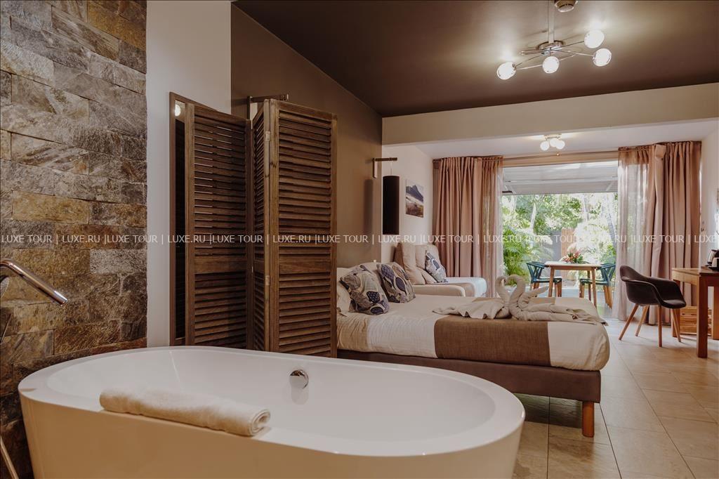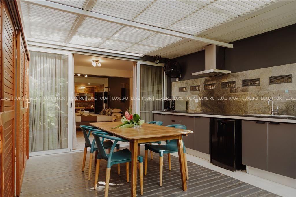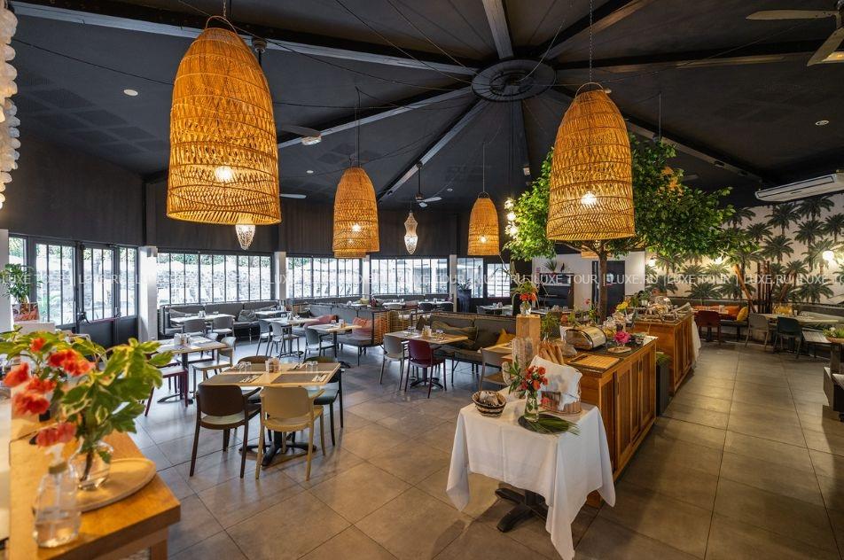 - Ресторан с террасой у бассейна представляет сочетание стиля французского бистро, креольской кухни и местных ингредиентов.