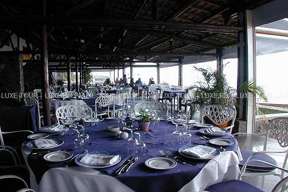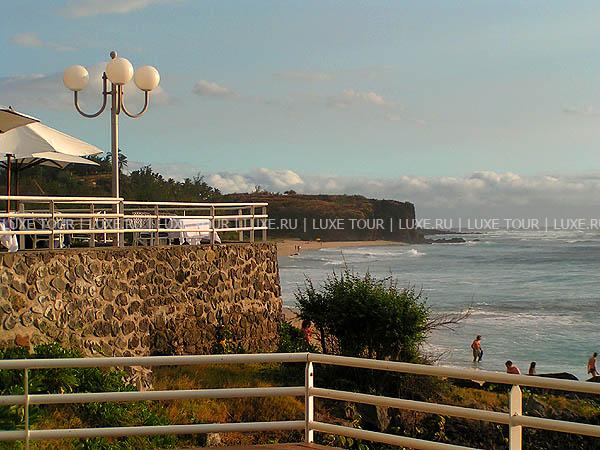 На открытой террасе бара приятно отдохнуть, потягивая фирменный экзотический коктейль и любуясь чудесным морским закатом.