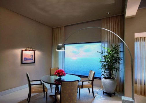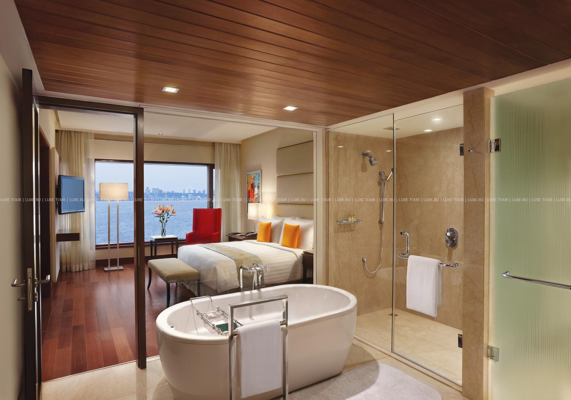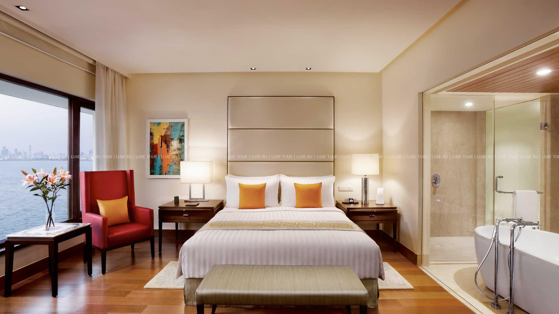 Просторные номера с захватывающими видами на Аравийское море элегантно декорированы в пастельной цветовой гамме и украшены живописью и цветочными композициями.