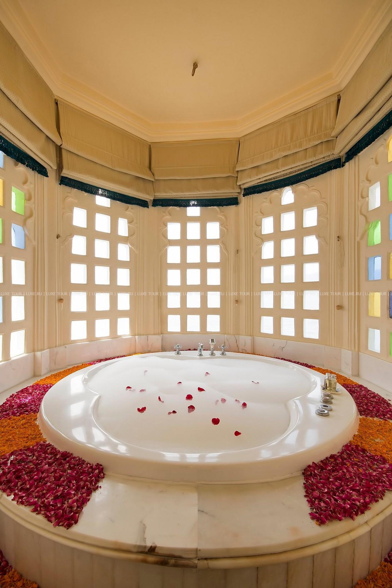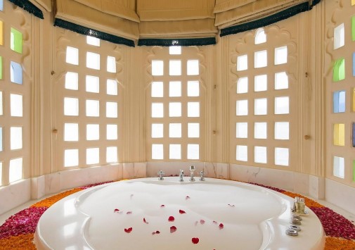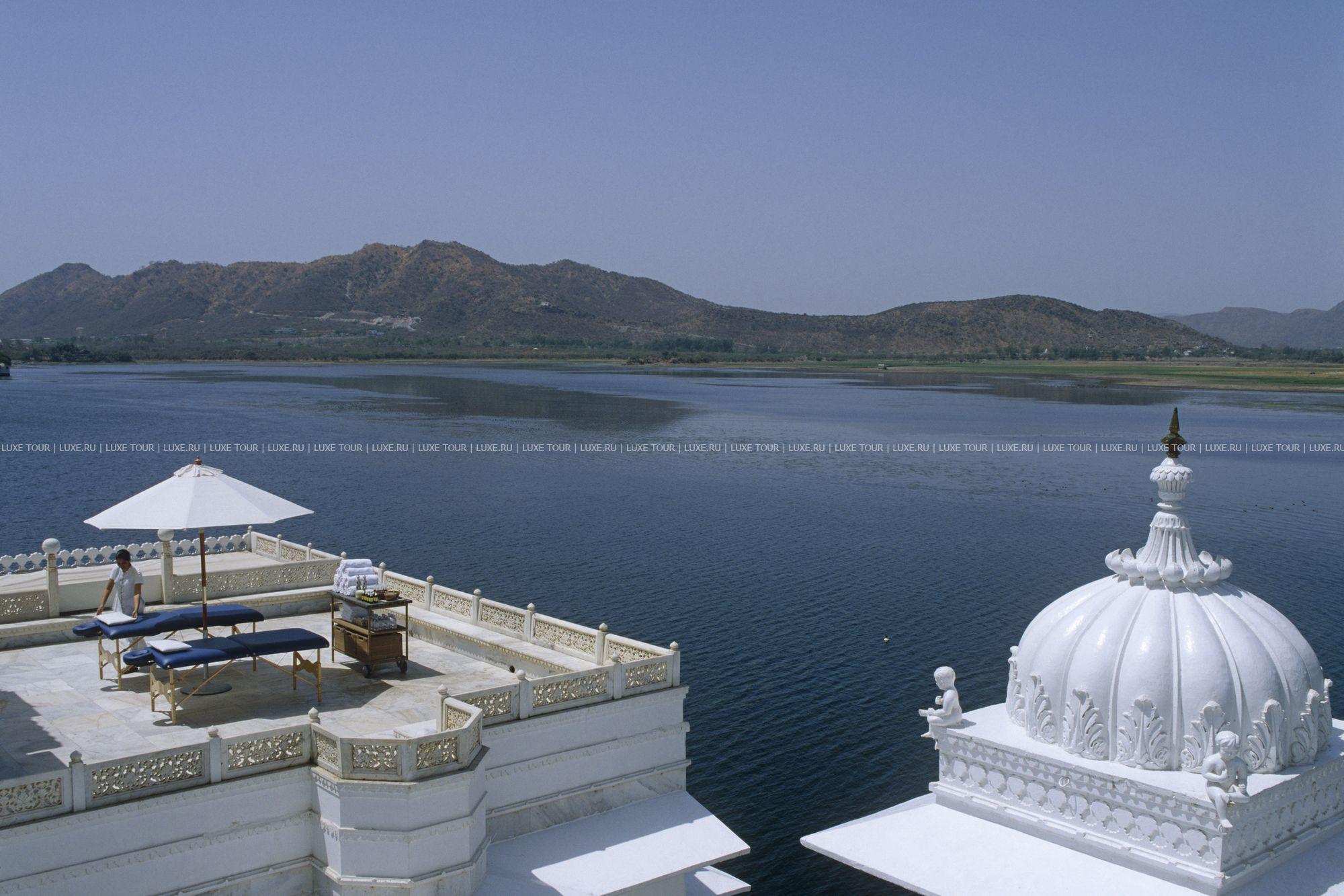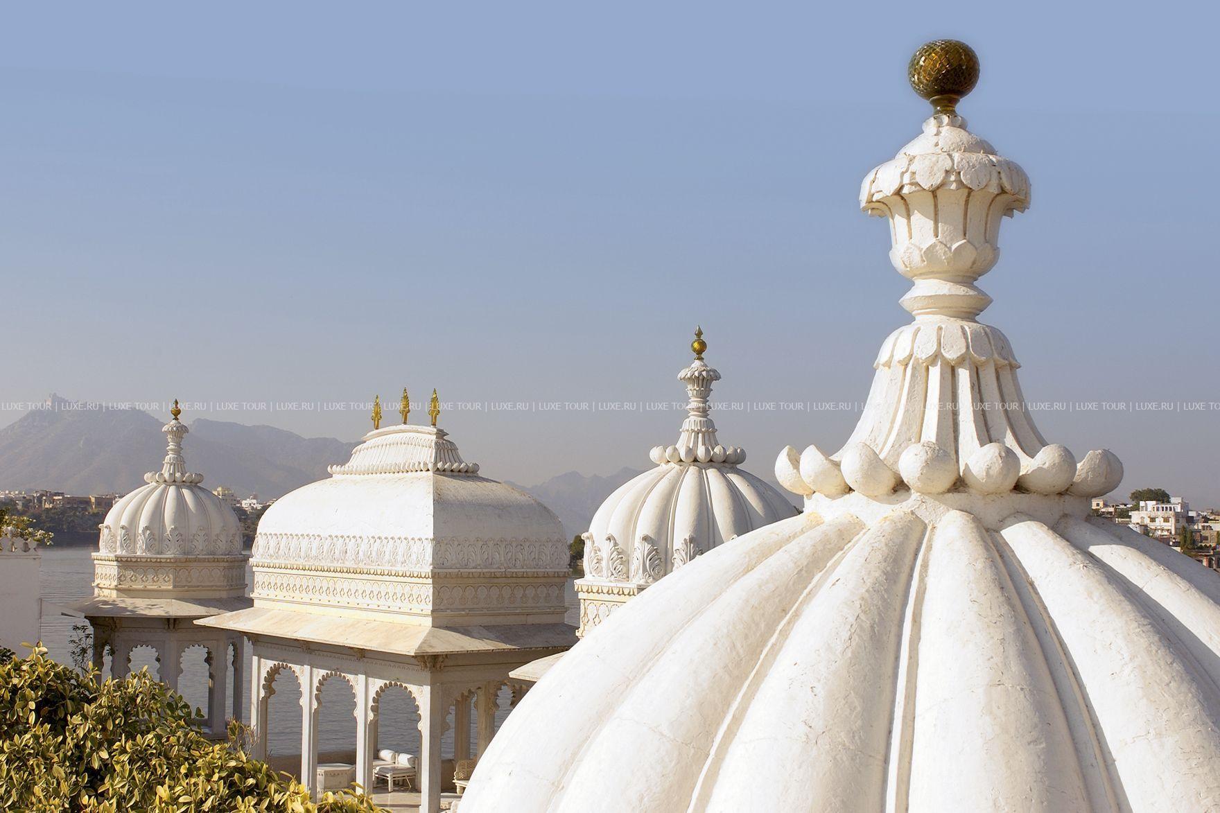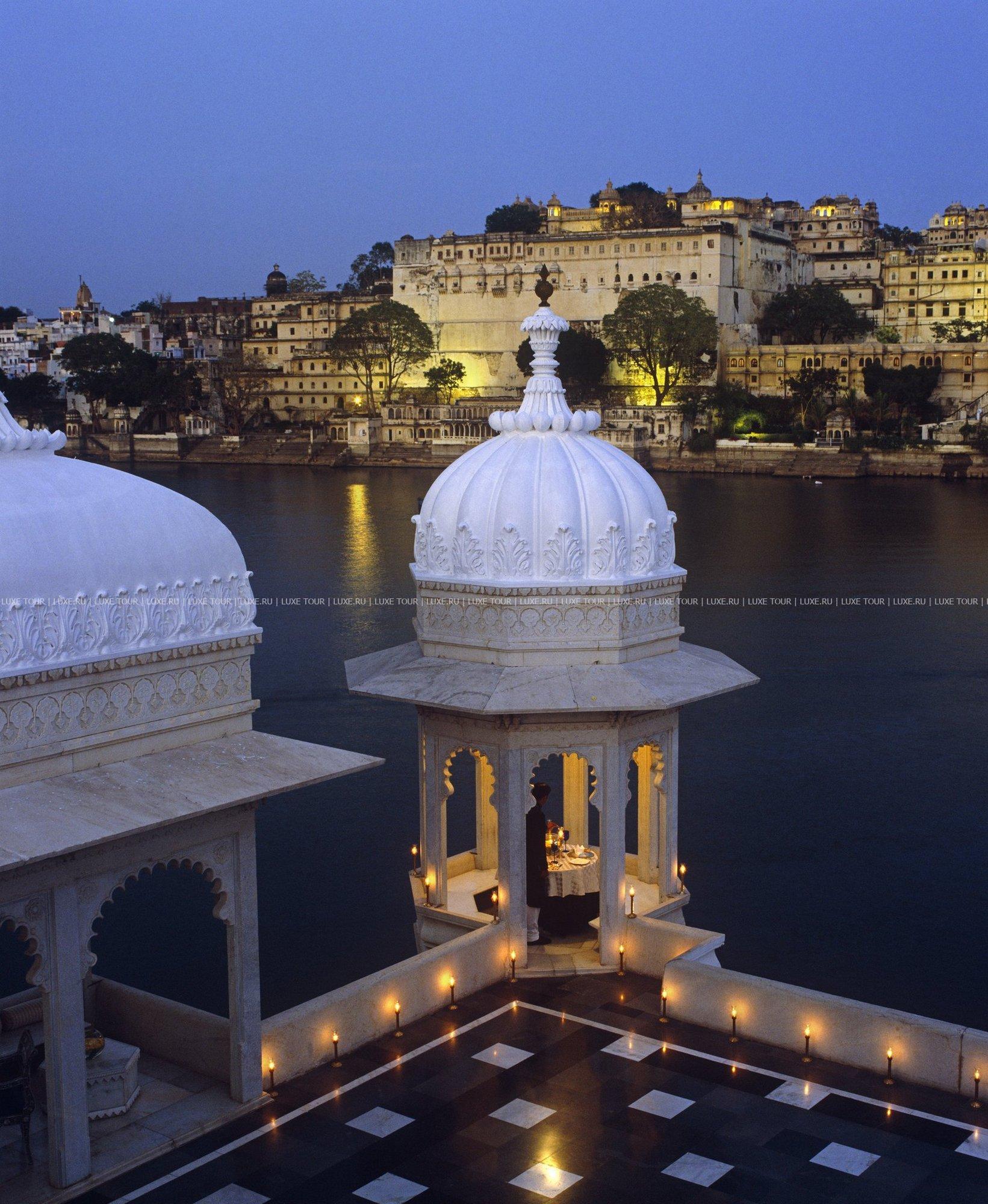 Дворец из белого мрамора The Taj Lake Palace расположен посреди живописного озера Пичола, занимая остров в 4 акра. Тончайшая каменная резьба, многоцветные витражи причудливо отражаются в озерной глади и создают сказочное впечатление. Дворец был построен в 1746 году махараджей Jagat Singh II, и служил ему летней резиденцией