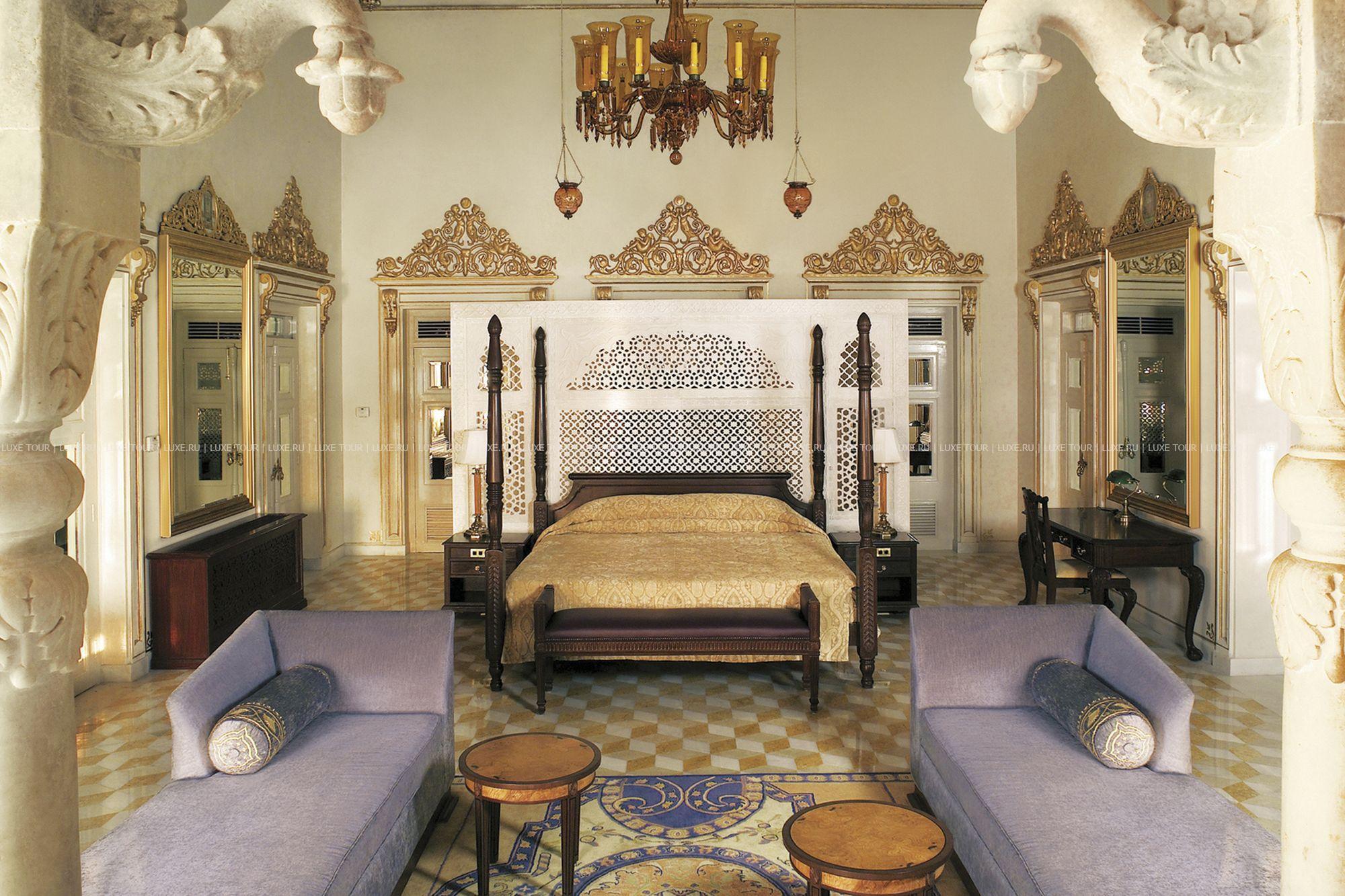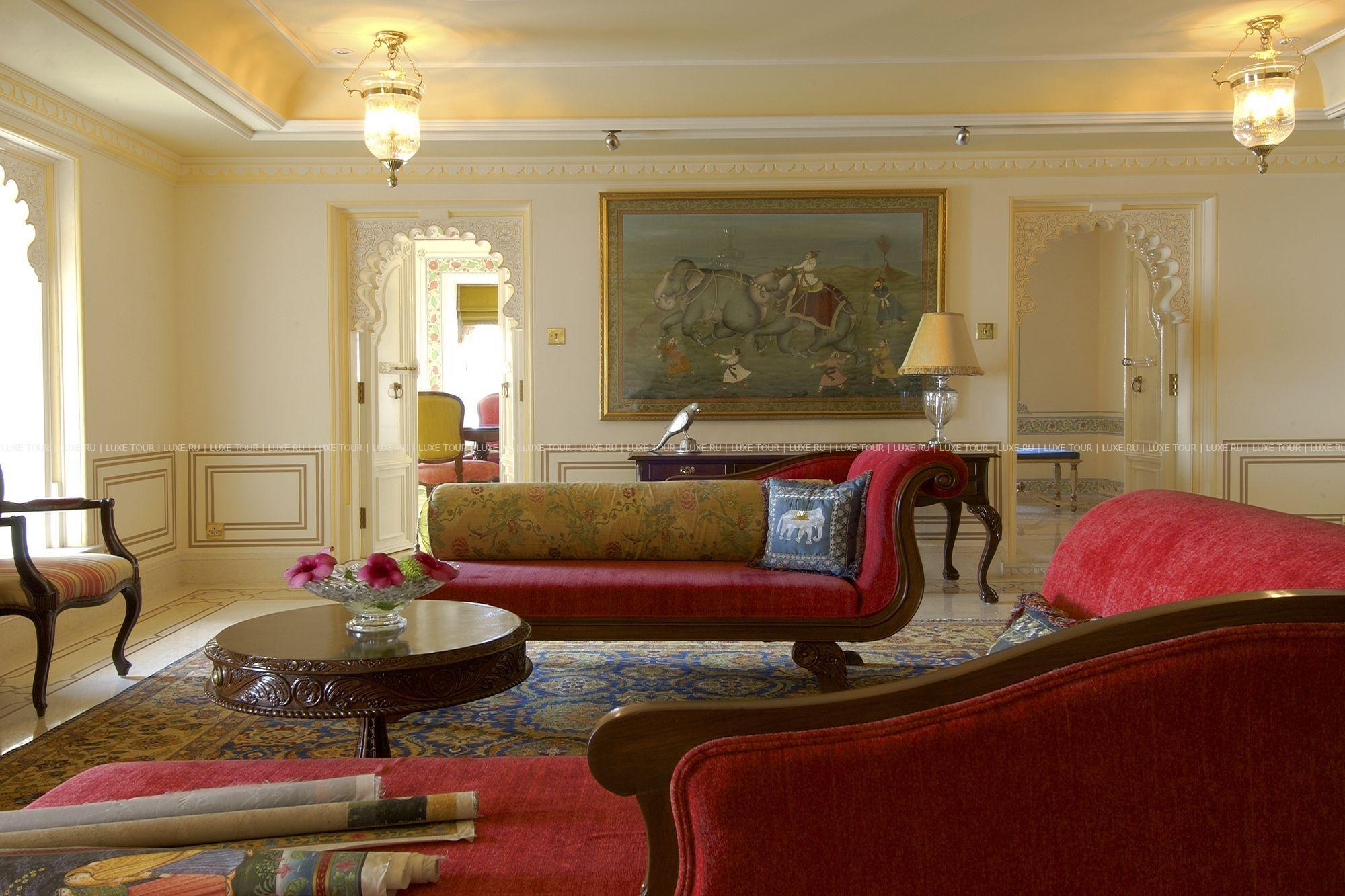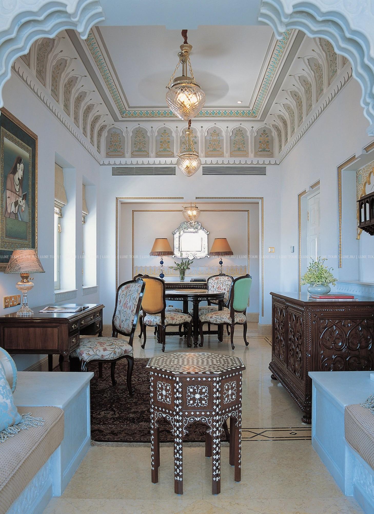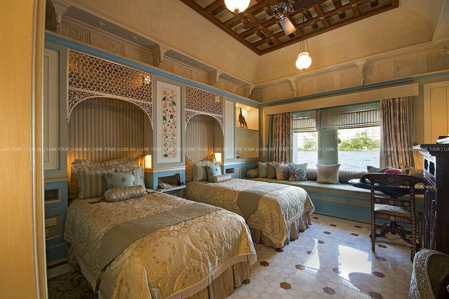 Дворец из белого мрамора The Taj Lake Palace расположен посреди живописного озера Пичола, занимая остров в 4 акра. Тончайшая каменная резьба, многоцветные витражи причудливо отражаются в озерной глади и создают сказочное впечатление. Дворец был построен в 1746 году махараджей Jagat Singh II, и служил ему летней резиденцией