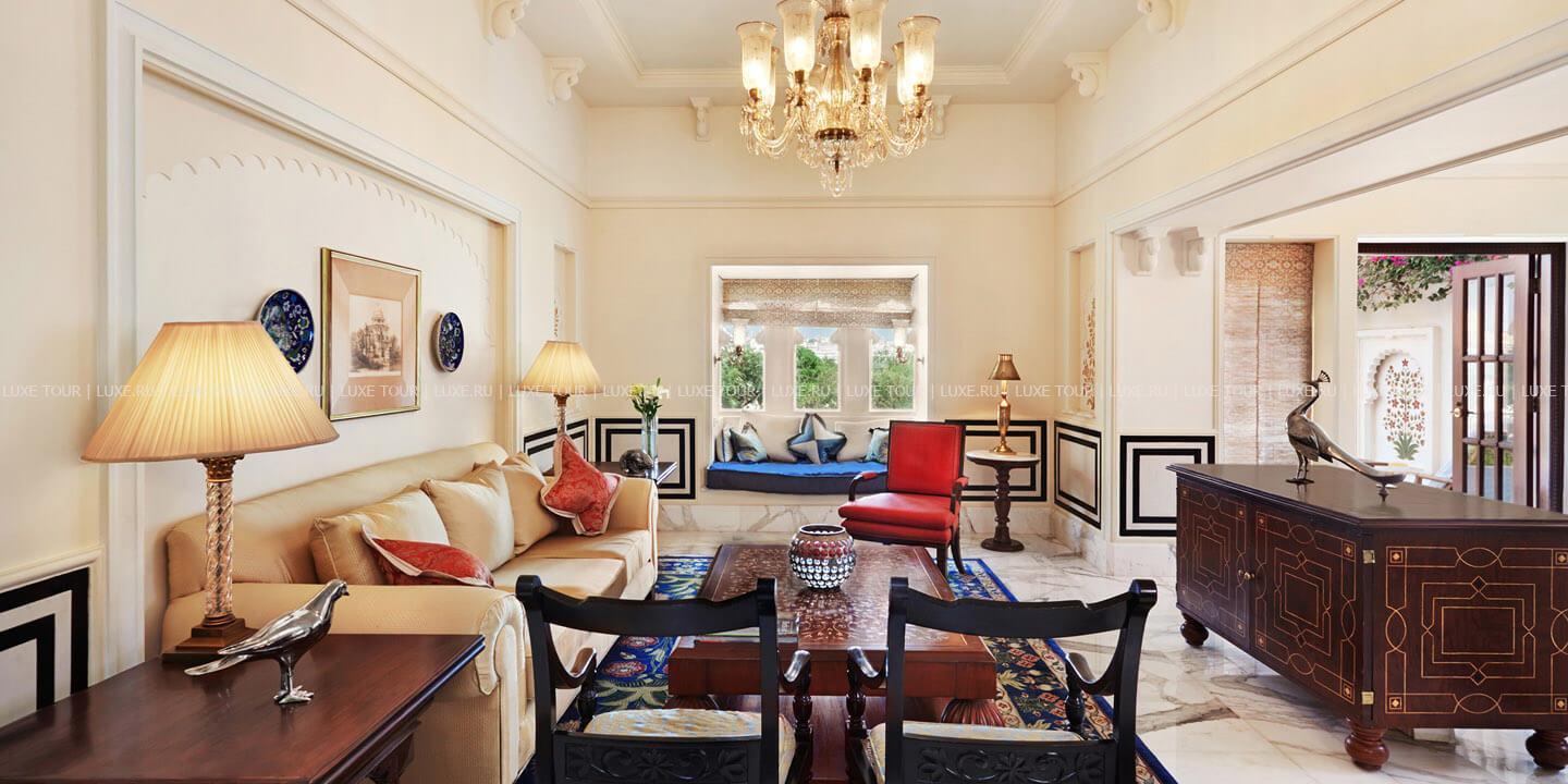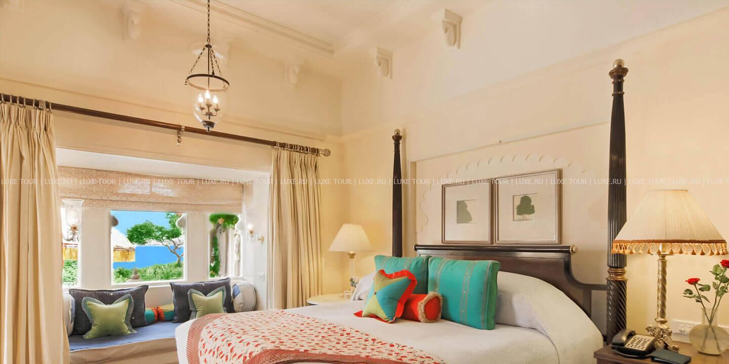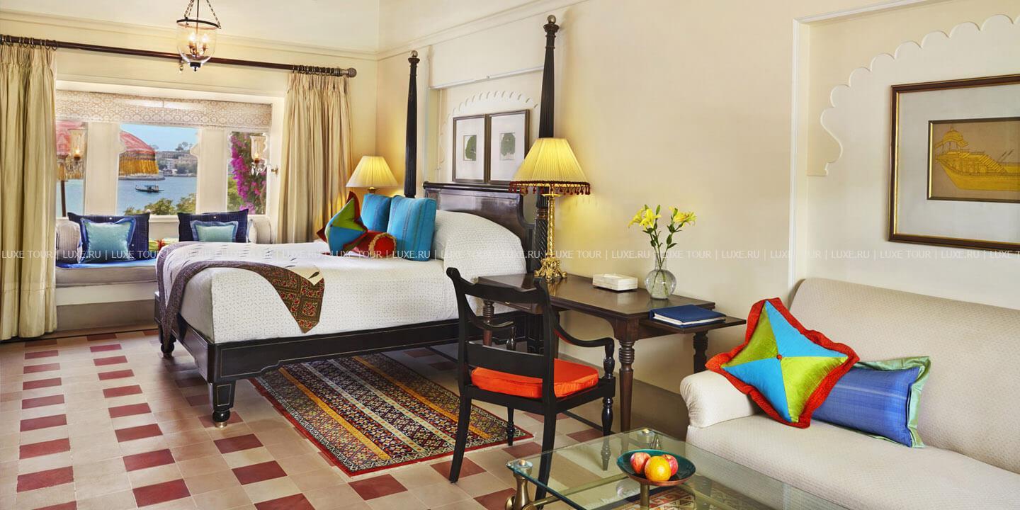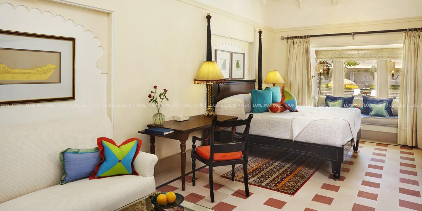 На берегу живописного озера Пичола, в окружении величественных гор Аравалли и древних индийских храмов расположился The Oberoi Udaivilas Удайпур, напоминающий сказочный дворец раджи. Колоннада с 450 каменными колоннами, украшенными резьбой, сверкающие золотом купола, ручная роспись на стенах, белоснежный мрамор, причудливые арки, парк с изумрудными лужайками, бьющими фонтанами и голубой гладью бассейнов. Интерьеры просторных номеров сочетают утонченную восточную роскошь и европейскую элегантность: лепнина, изящная мебель из резного темного дерева, ковры ручной работы и изысканные произведения индийского искусства. The Oberoi Udaivilas Удайпур располагает превосходным СПА Центром с бассейном, сауной, тренажерным залом и салоном красоты, также на территории отеля есть два открытых бассейна, гостям предлагаются прогулки по озеру, красочные фольклорные шоу. В двух ресторанах The Oberoi Udaivilas Удайпур можно отведать деликатесы индийской и западной кухонь, а бар представляет прекрасный выбор напитков.