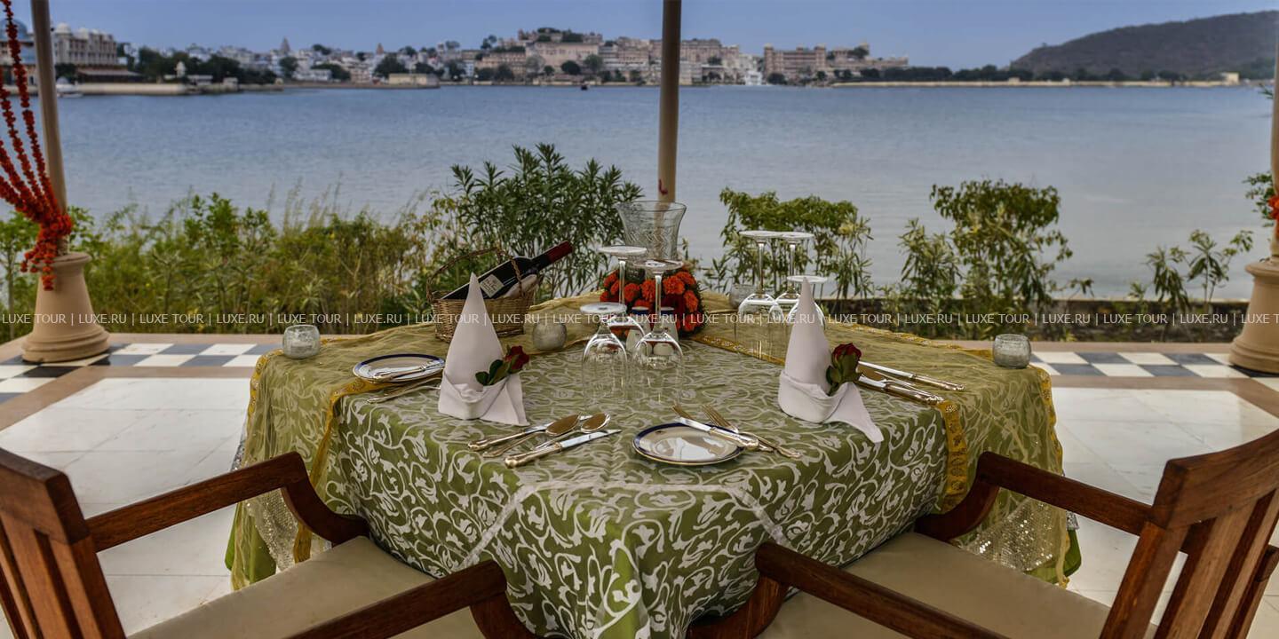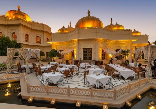 В элегантном ресторане Udaimahal, воссоздающим интерьеры королевского дворца, сервируют изысканные ужины при свечах, где представлено разнообразие деликатесов Раджастхана, северо-индийской и традиционной индийской кухонь.