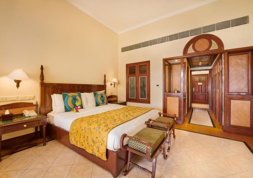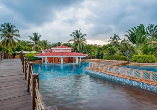 Один из лучших курортных комплексов Гоа расположен среди благоустроенных тропических садов на огромной территории (площадью 35 га) и предлагает широкий песчаный пляж протяженностью 880 метров, который заключен между устьями двух рек. Отель, построенный в португальском колониальном стиле, предлагает 14 соединенных между собой двухэтажных корпусов. Изысканно декорированные просторные номера с балконами соединяют безукоризненный стиль и максимальный комфорт. К услугам гостей великолепное поле для гольфа на 9 лунок, прекрасно оборудованный тренажерный зал и Спа-центр, предлагающий различные аюрведические процедуры.