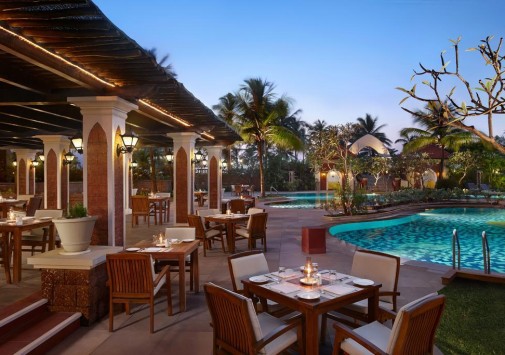 К услугам гостей несколько ресторанов и баров: Cafe Cascada –ресторан, предлагающий блюда индийской и континентальной кухни. Открыт 24 часа. Carnaval – средиземноморская и интернациональная кухня. Castaways – гриль-ресторан у бассейна предлагает блюда гоанской кухни и является местом проведения музыкальных и танцевальный вечеров. Oriental Hut – китайский ресторан, расположенный на пляже. Sossegado Grill – местная кухня, большой выбор блюд из морепродуктов. Atrium Bar – лобби-бар. Island Bar – бар, расположенный на острове в центре бассейна. Sunset Bar – бар на пляже, коктейли и освежающие напитки.