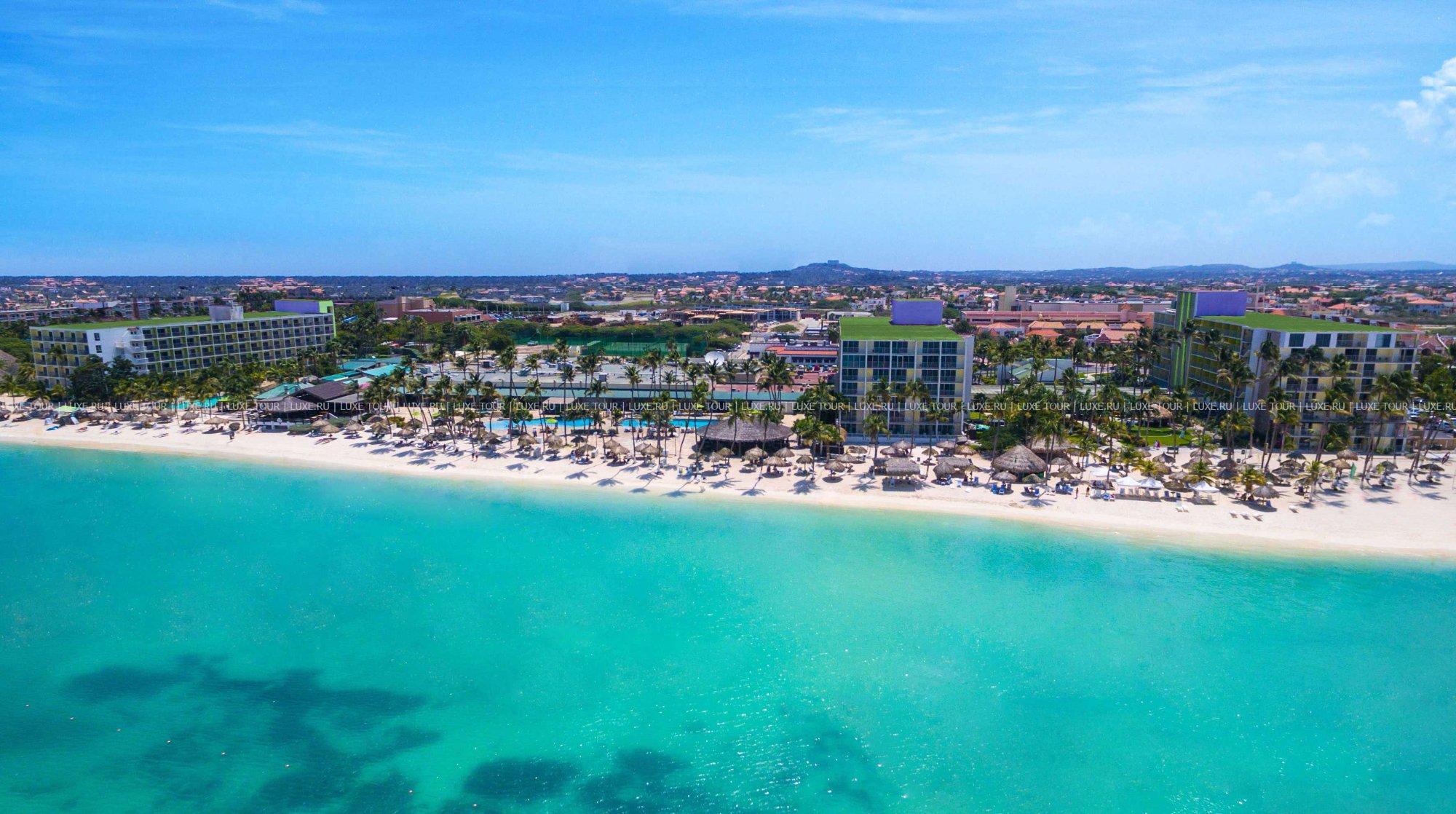 Отель расположен на пляже Палм-Бич в 10 минутах езды от центра столицы Арубы – города Ораньестада с его магазинами, ресторанами и ночными клубами. К услугам гостей – все виды пляжных развлечений, водные виды спорта, бассейны и оздоровительный центр, разнообразная кухня и внимательный, дружелюбный персонал отеля. Отель предлагает обслуживание по системе.