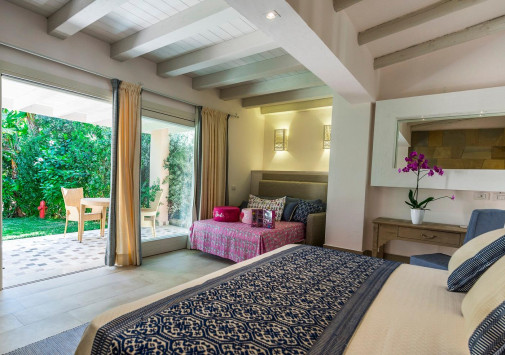Характерная архитектура сардинской деревеньки с центральной площадью, объединяющей ее в единый комплекс, элегантными зданиями терракотовых тонов, узкими улочками и открытыми кафе идеально сочетается с окружающими красотами. Не менее изыскано оформлено и внутреннее убранство номеров: удобная мебель, спокойные тона, полотна с характерными сюжетами, балки, широкие окна — каждый номер очарует гостей особым уютом и своим индивидуальным настроением. Каждый номер включает террасу или внутренний дворик. Некоторые бунгало сообщаются с соседними, что делает комплекс гостиницы идеальным для спокойного семейного отдыха.