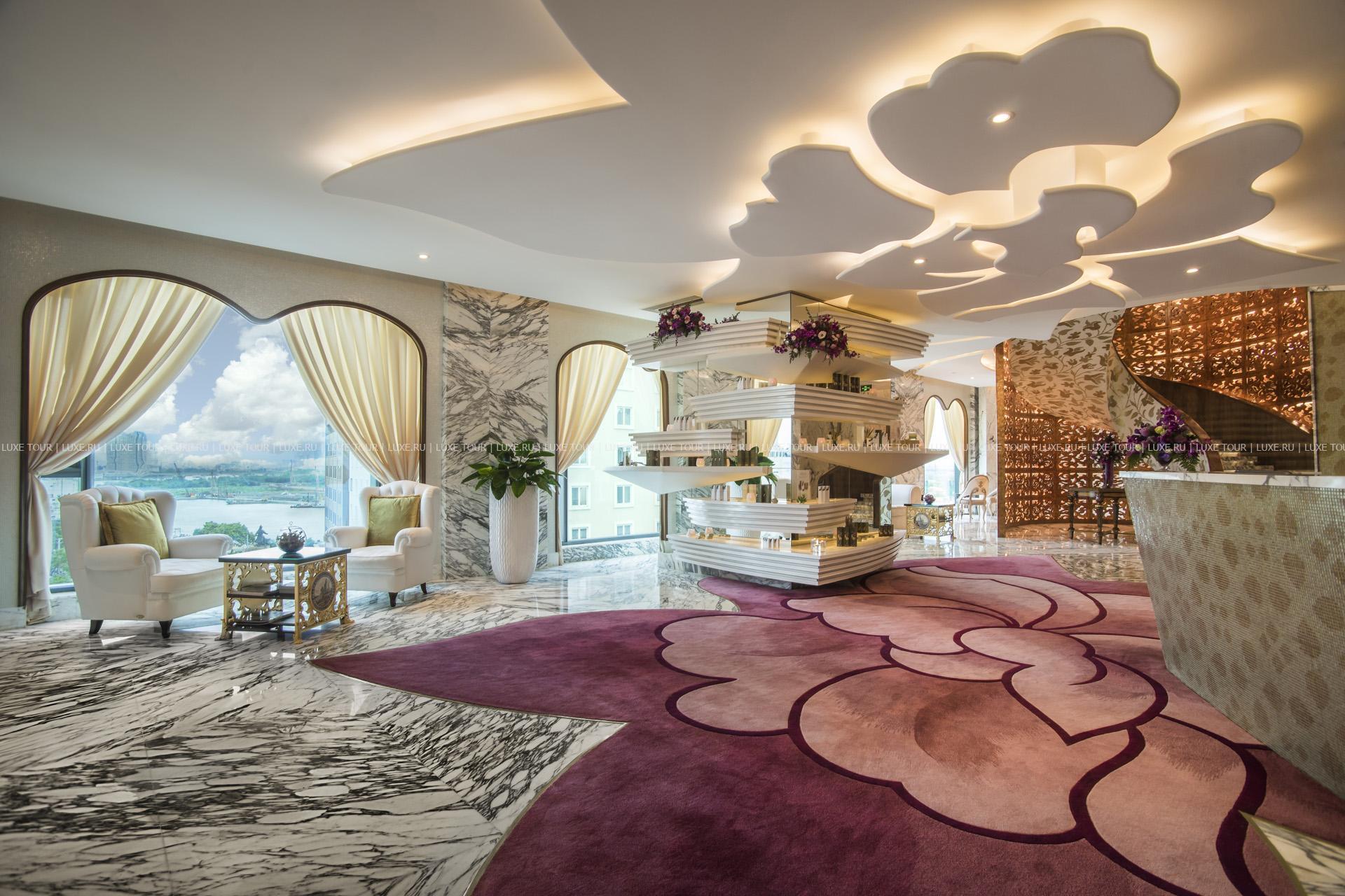 The Reverie Saigon Вьетнам — фешенебельный отель, расположенный с 27 по 39 этажи величественного здания Times Square, которое возвышается в самом сердце Хошимина, рядом с дорогими бутиками и торговыми центрами на бульваре Нгуен Хюэ. Отель по праву входит в престижную международную ассоциацию «Ведущих отелей мира», впечатляя роскошными интерьерами, созданными знаменитыми дизайнерскими домами Италии, и разнообразием услуг класса «люкс». Гостей ждут шикарные номера с захватывающим панорамным видом на Хошимин и реку Сайгон, пять изысканных ресторанов и кафе, великолепный СПА центр площадью 1200 м