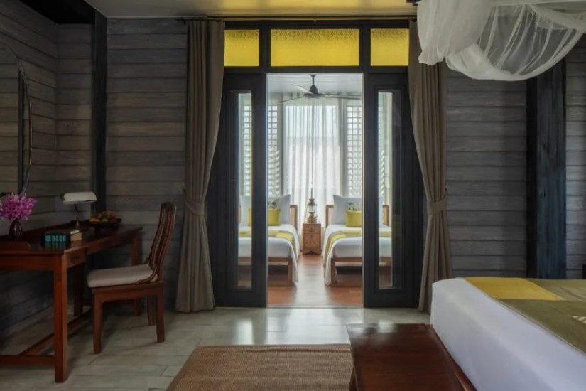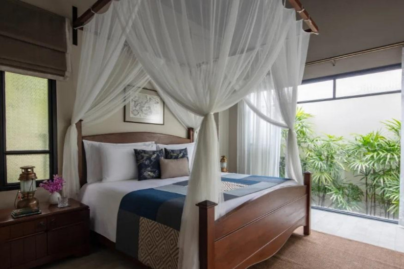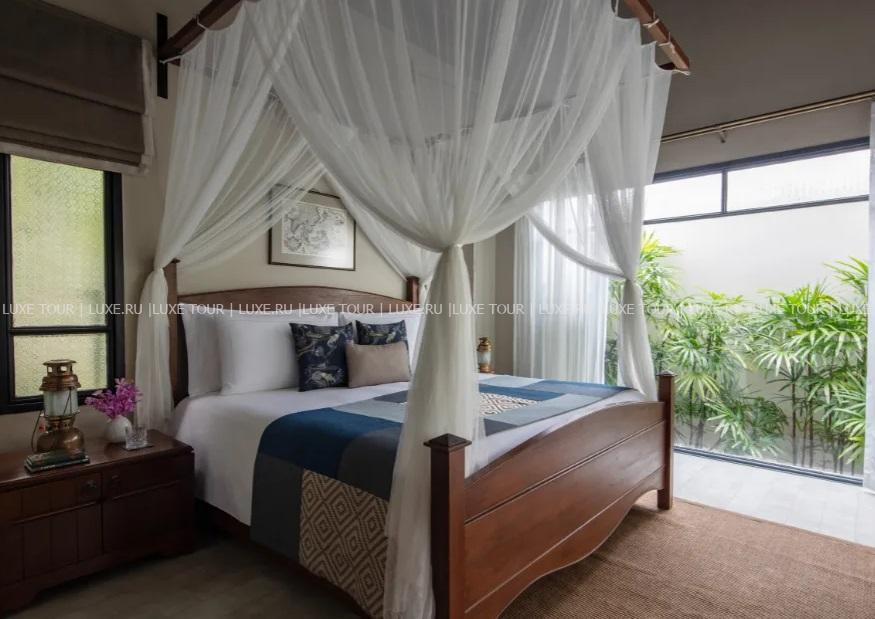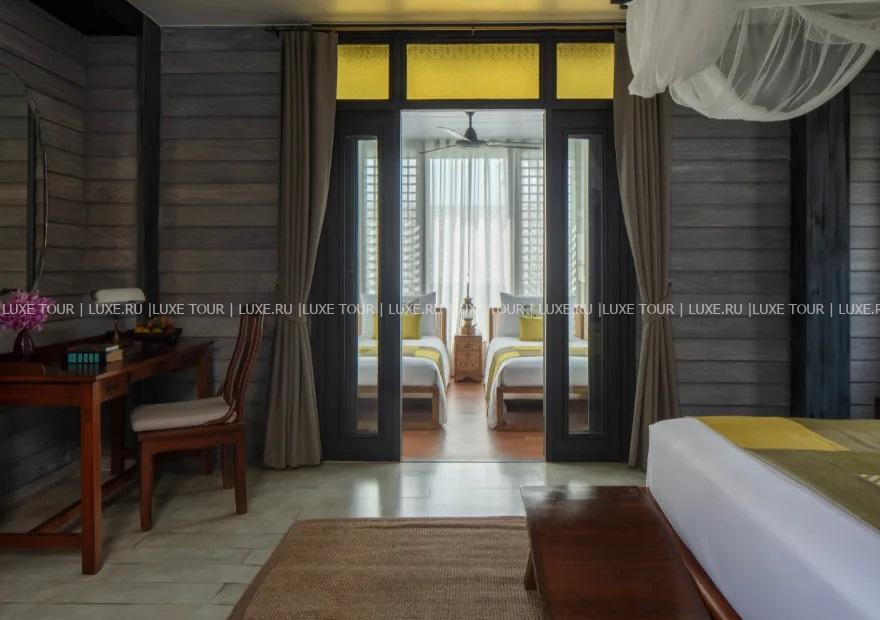- 55 м2. Состоит из двух спален с кроватью king-size и двумя кроватями twin, ванной комнаты, с видом на сад. Максимальное размещение — 3 человека.