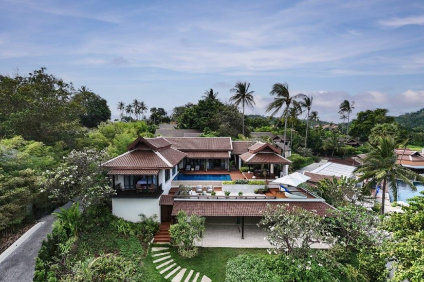 - 1150 м2. Состоит из пяти спален с четырьмя кроватями king-size и двумя кроватями twin, обеденной зоны, ванных комнат, меблированной террасы с бассейном и павильоном для отдыха. Максимальное размещение — 15 человек.